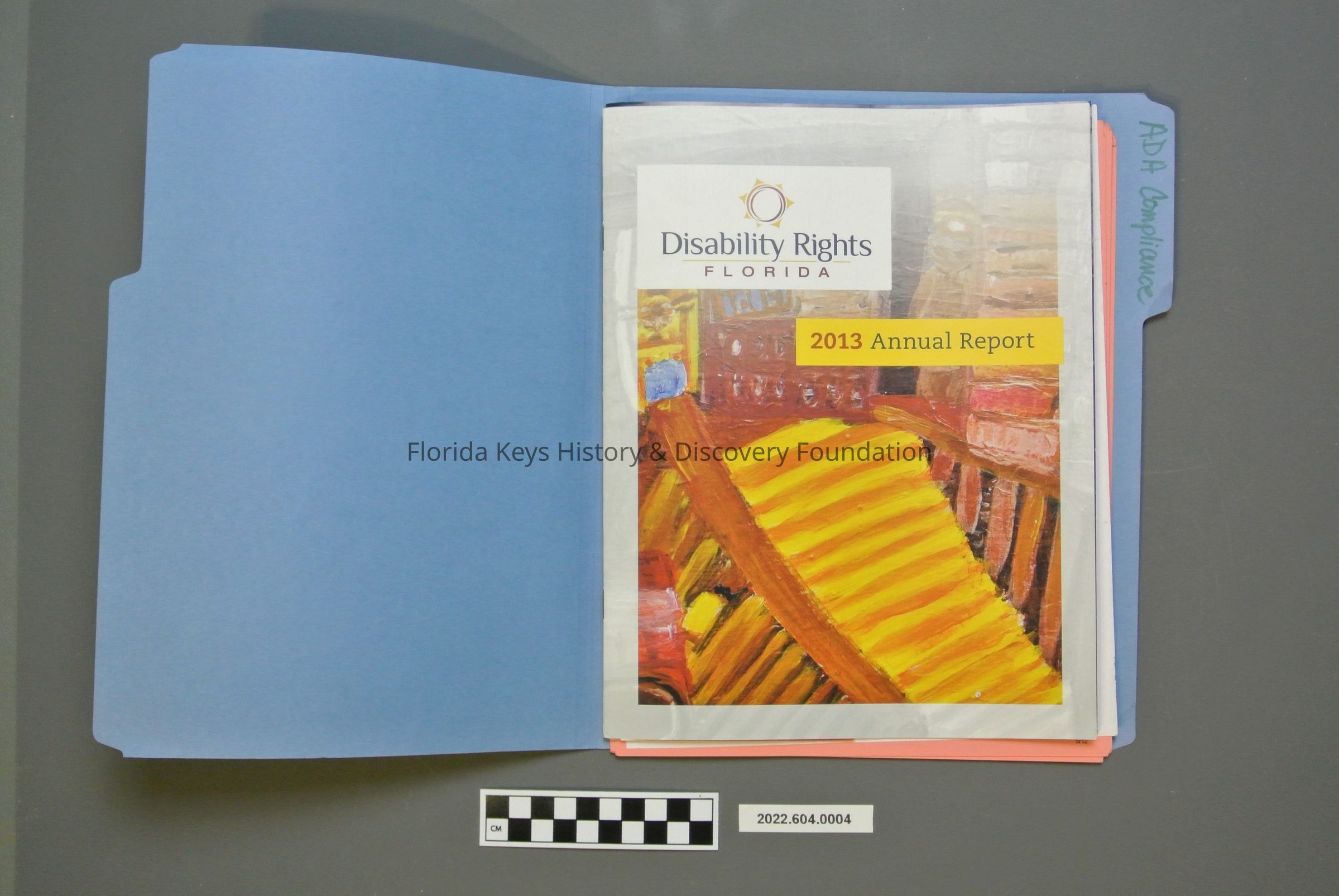 Collection of materials regarding disability rights and the Americans with Disabilities Act. Includes Disability Rights Florida 2013 Annual Report, various pamphlets, and printouts of the ADA home page with GCUK annotations.Collection