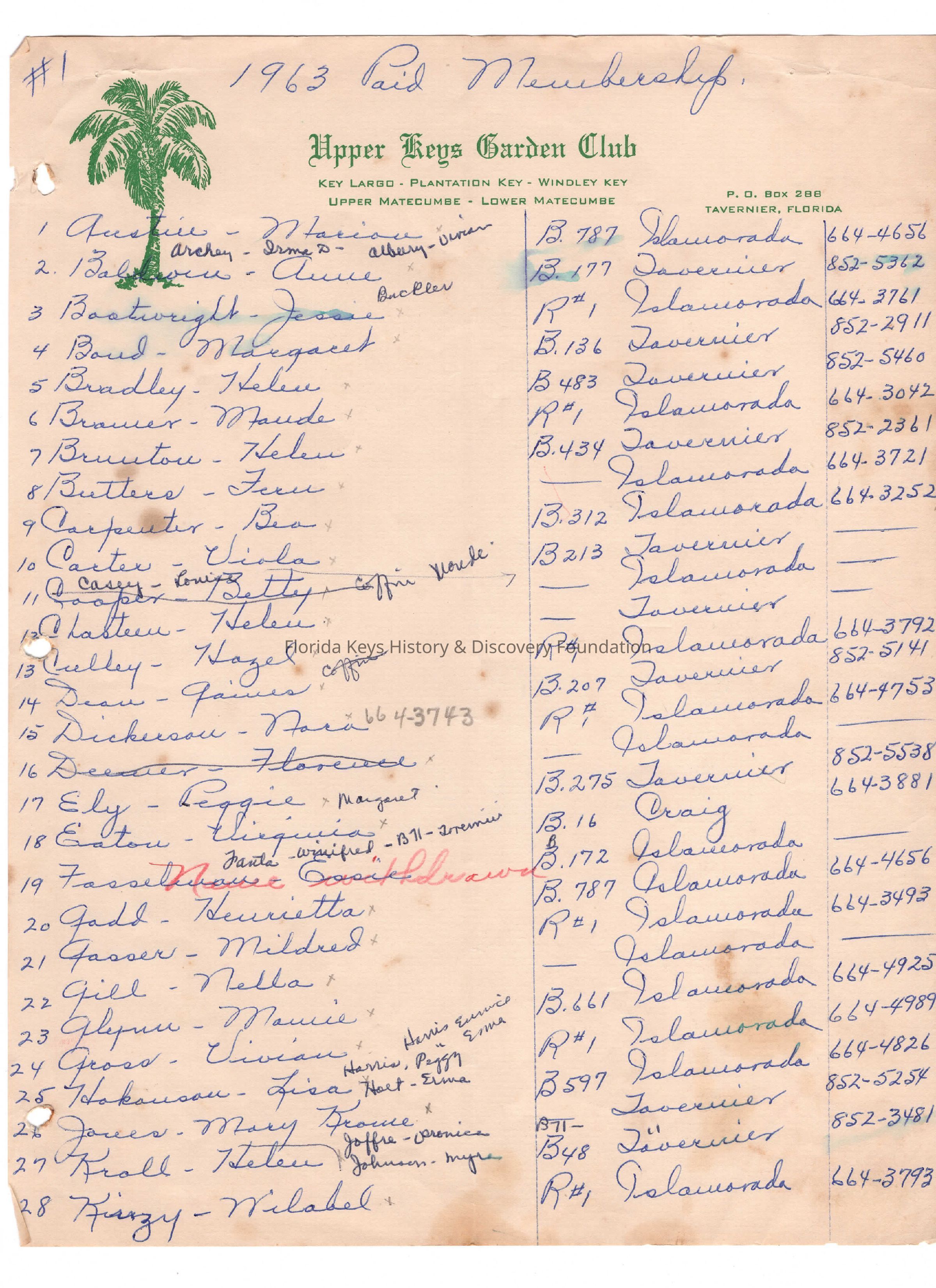 Handwritten list of paid memberships from 1963. Three pages.Collection
