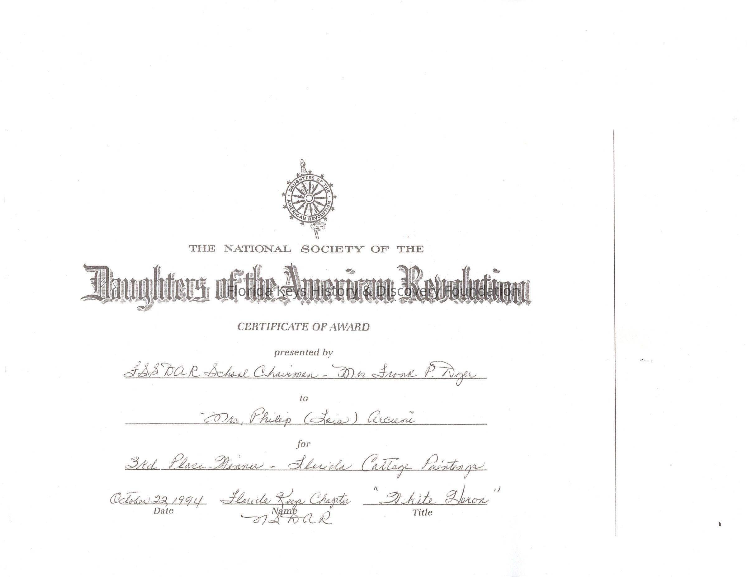 Certificate of Award to Mrs. Philip (Lois Arcuri)Collection