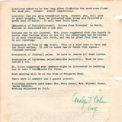 Florence Booth, Frances Tracy, Mrs. Carl Scheffel, Mary Easton, Gertrude Holzinger, Carolyn Cohen, Carolyn V. Cohen, G. A. "Jerry" Ellis, Violet Carpenter, Herma Gazzola, Mary Jones, Willabel Kinzy, Garden Club of the Upper KeysCreated By