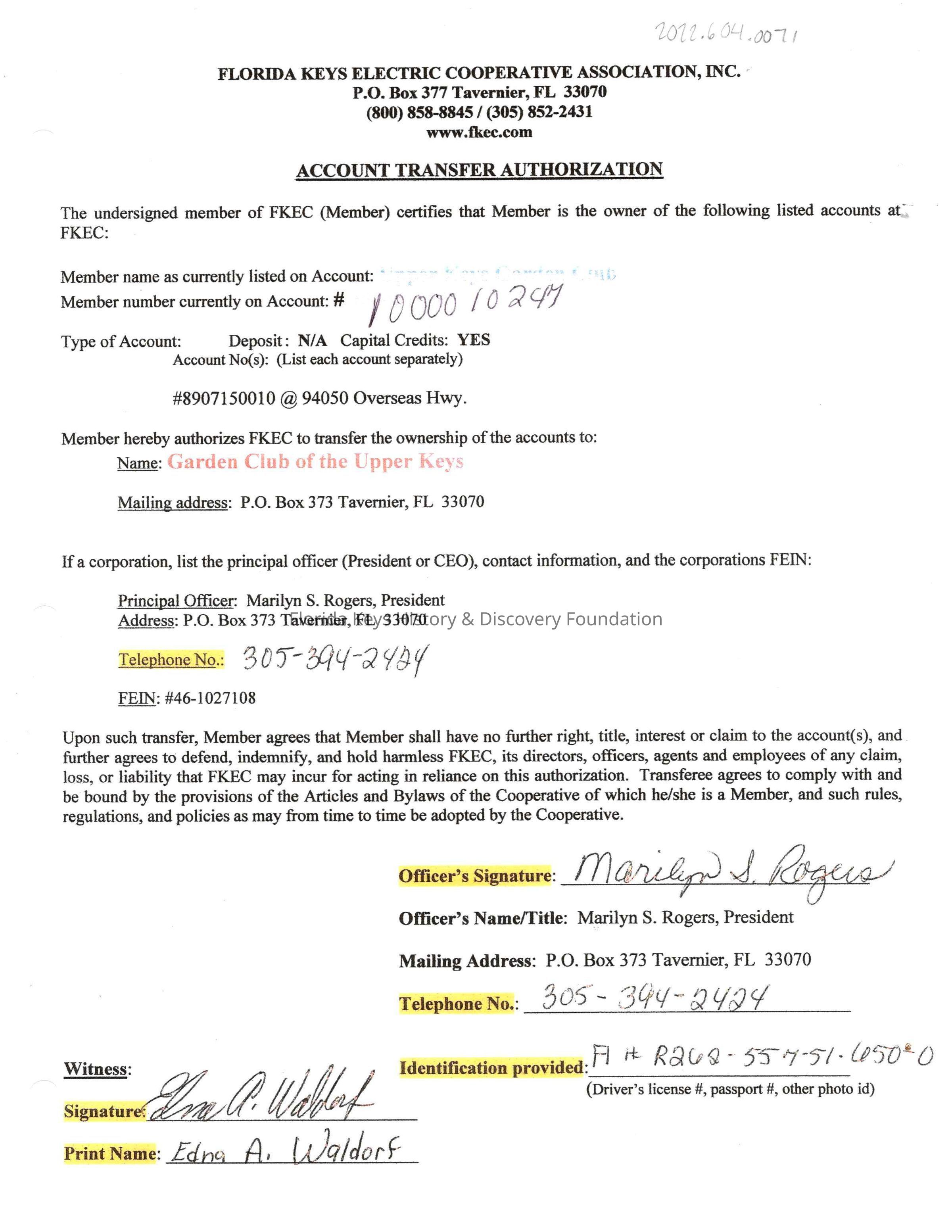 FKEC Account Transfer AuthorizationEntry/Object ID