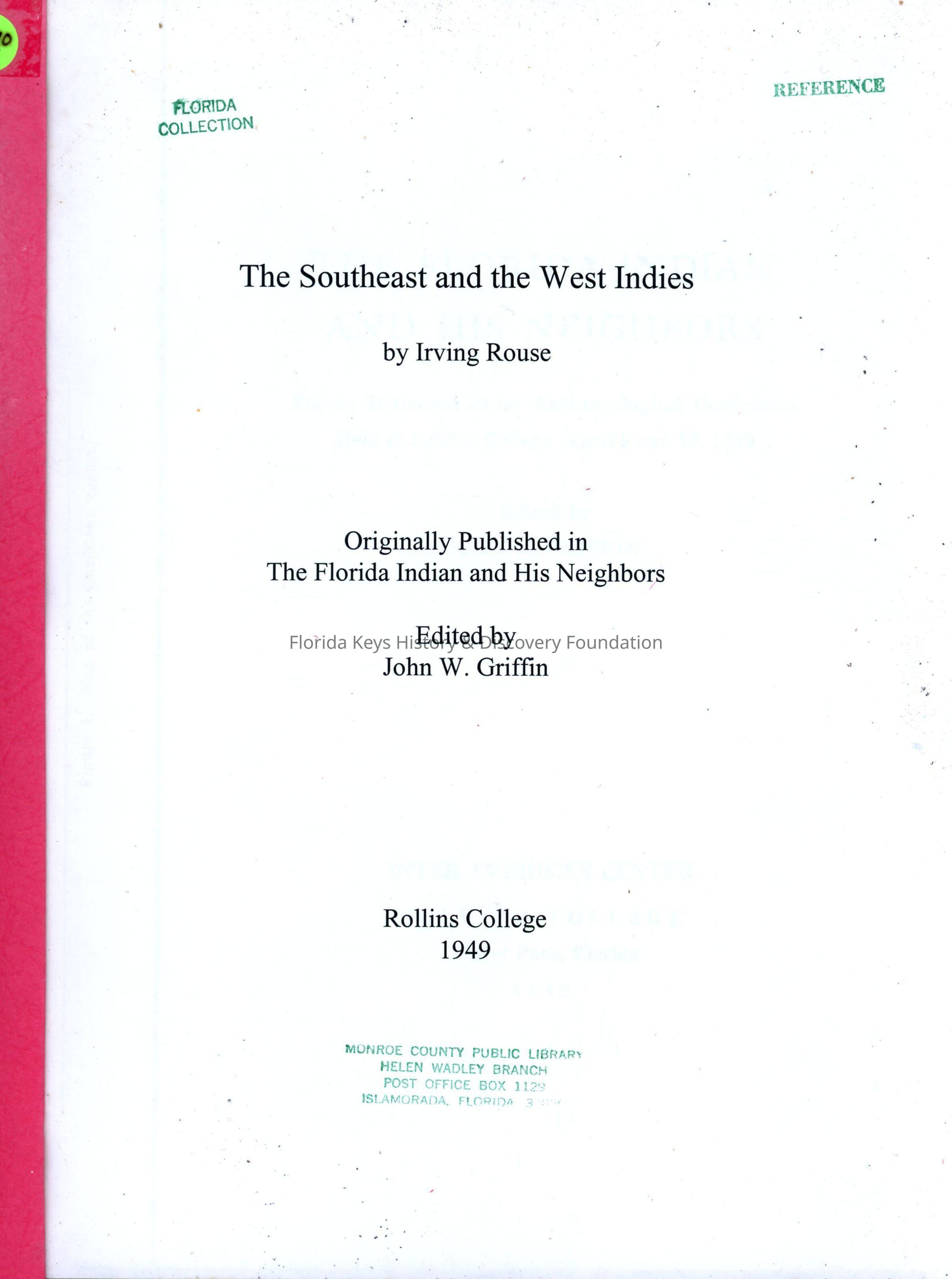 Originally Published in The Florida Indian and His Neighbors, Edited by John W. GriffinCollection