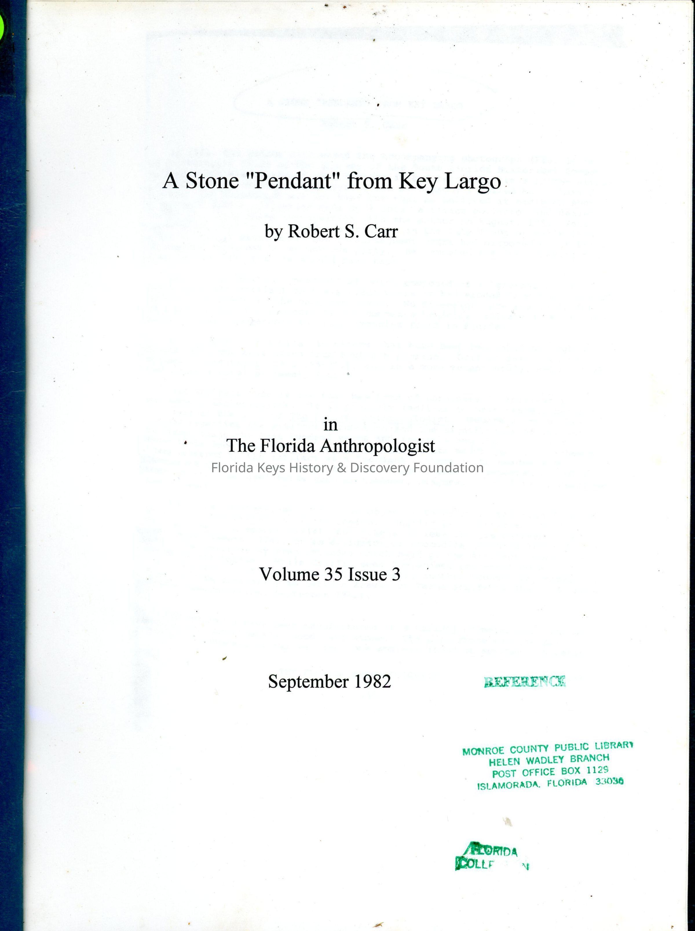 A Stone "Pendant" From Key LargoEntry/Object ID