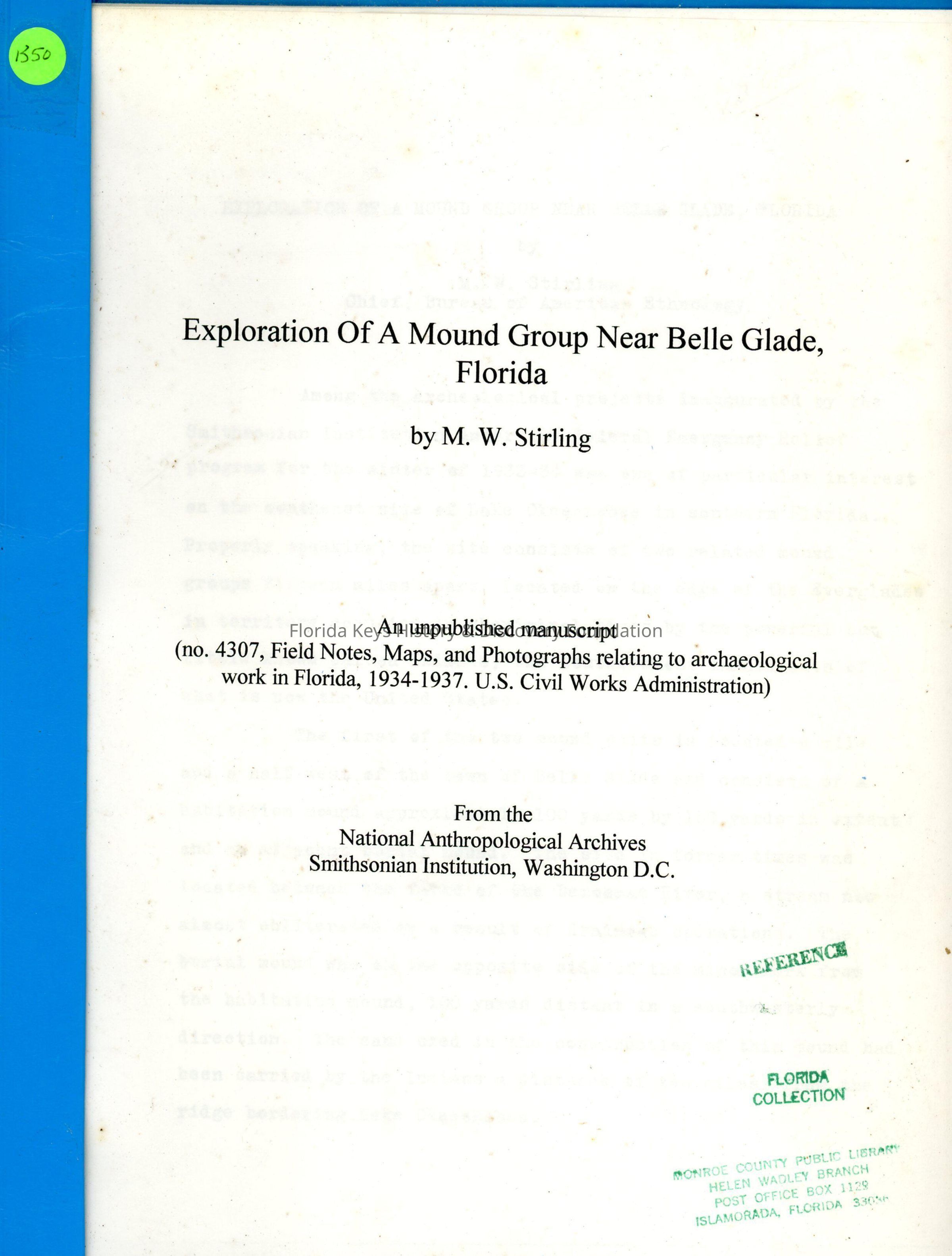 "An Unpublished Manuscript (no.4307, Field Notes, Maps, and Photographs relating to archaeological work in Florida, 1934-1937. U.S. Civil Works Administration)Context