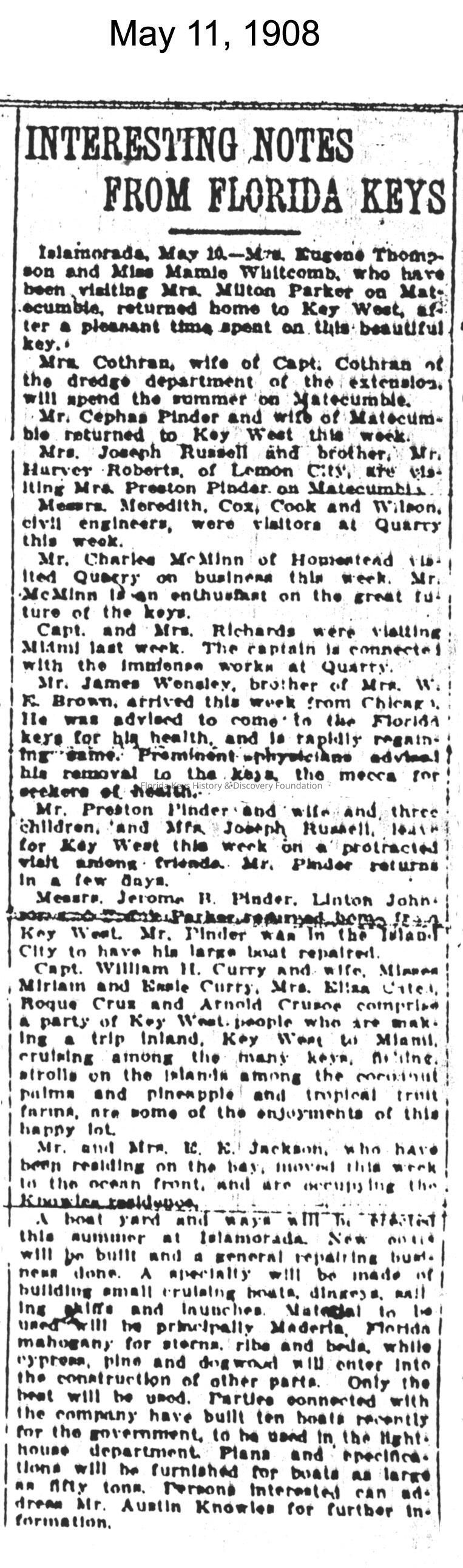 "Interesting Notes from Florida Keys" - May 11, 1908Collection