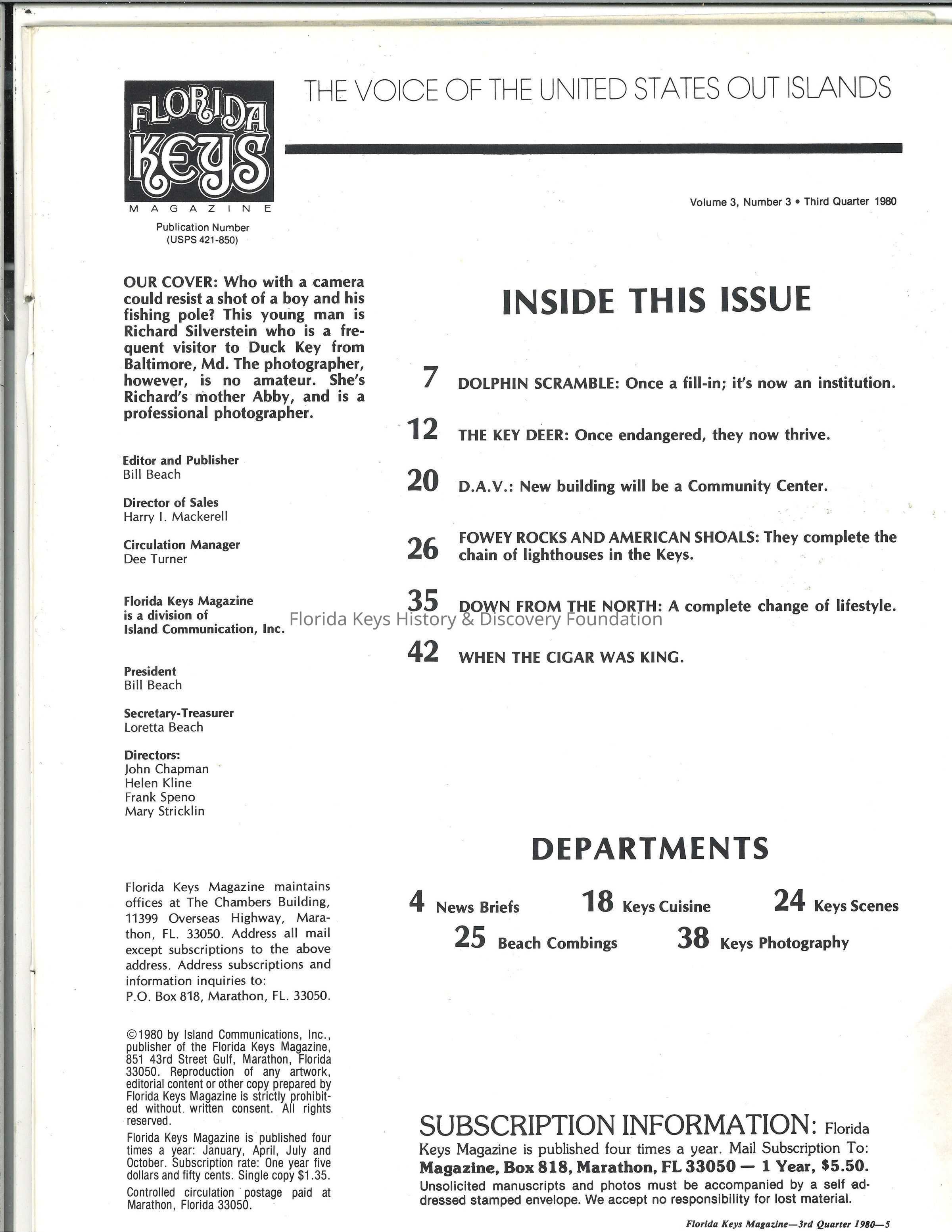 Florida Keys Magazine, Third Quarter, 1980Entry/Object ID