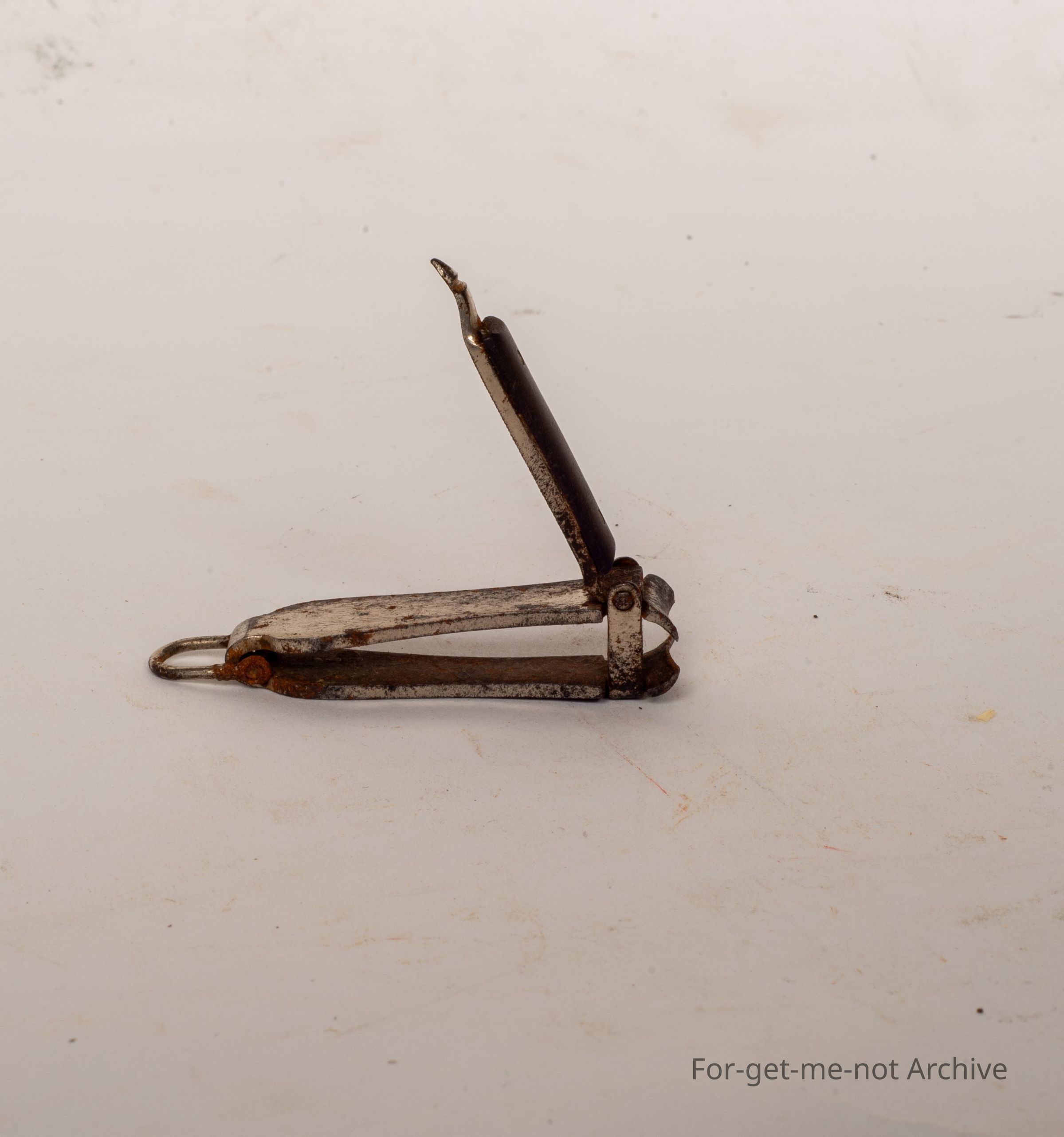 This is a small nail cutter, little, wooden handle, riveted, beautifully made thing, still works on a spring,