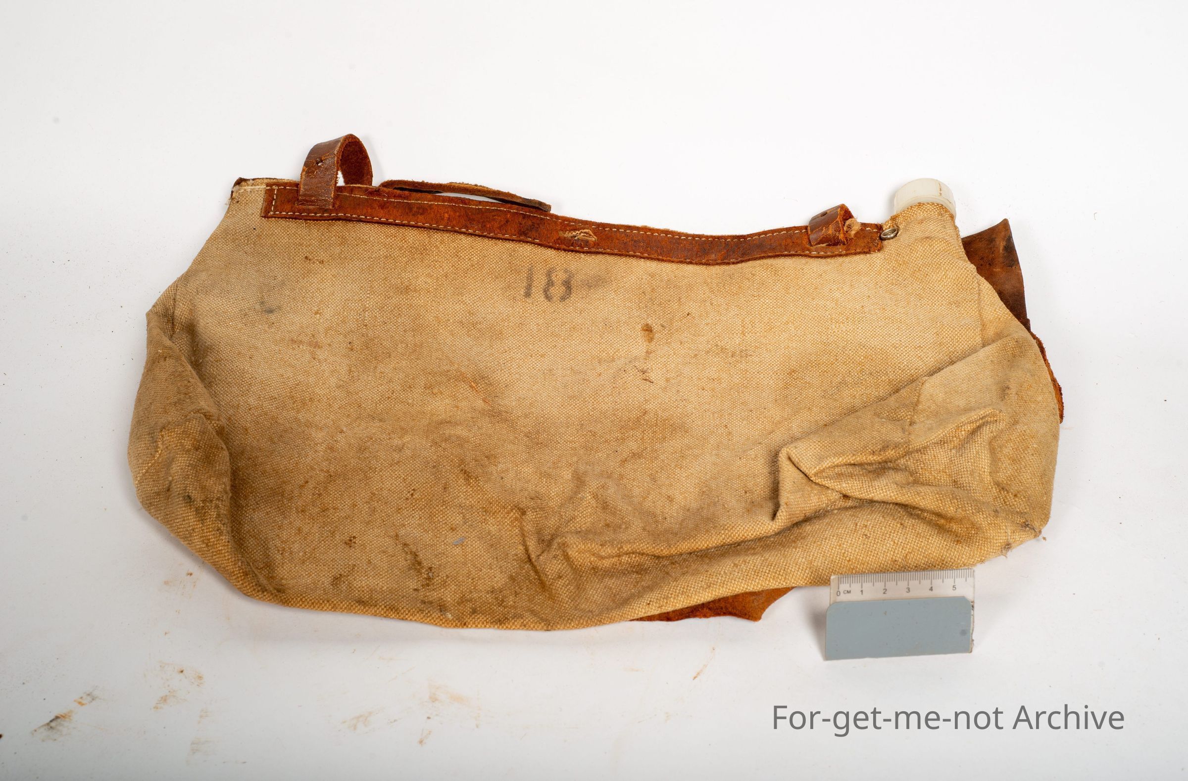 This is another canvas water bag that it's been on a pack saddle perhaps. A leather backing strip so as not to tank the water. Very lightly built in comparison to RM Williams. A plastic spout, so not very old either.Collection