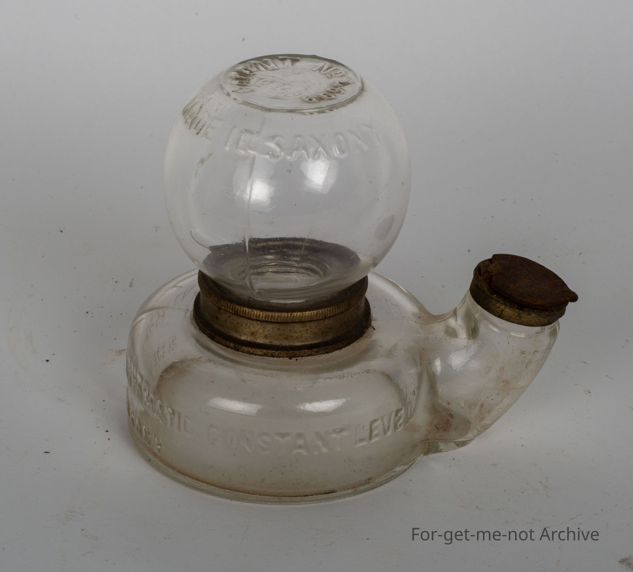 Interesting ink well as this well is patented for its ability to maintain a constant level of Ink in the well, "Made in Saxony, the Automatic constant level Inkstand patent No. 4699"Collection
