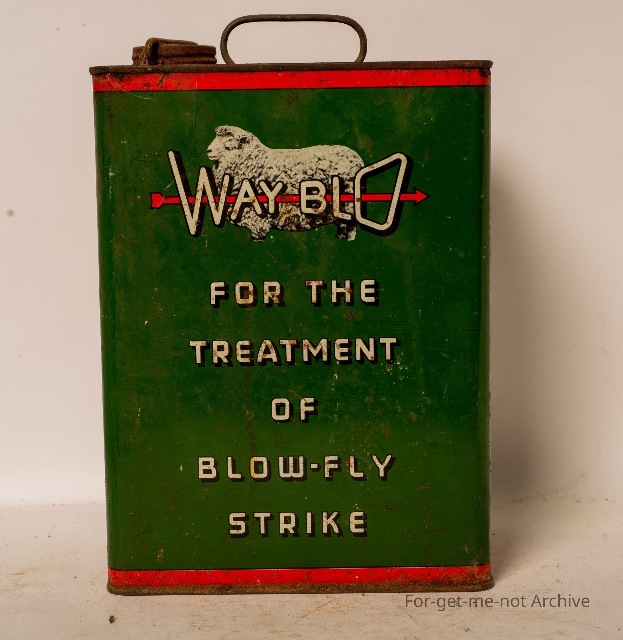 This is a tin of Way-Blow for the treatment of blowfly, strike, and sheep. It is quite hard to find this tin in anywhere near reasonable condition, and this one is pretty good.