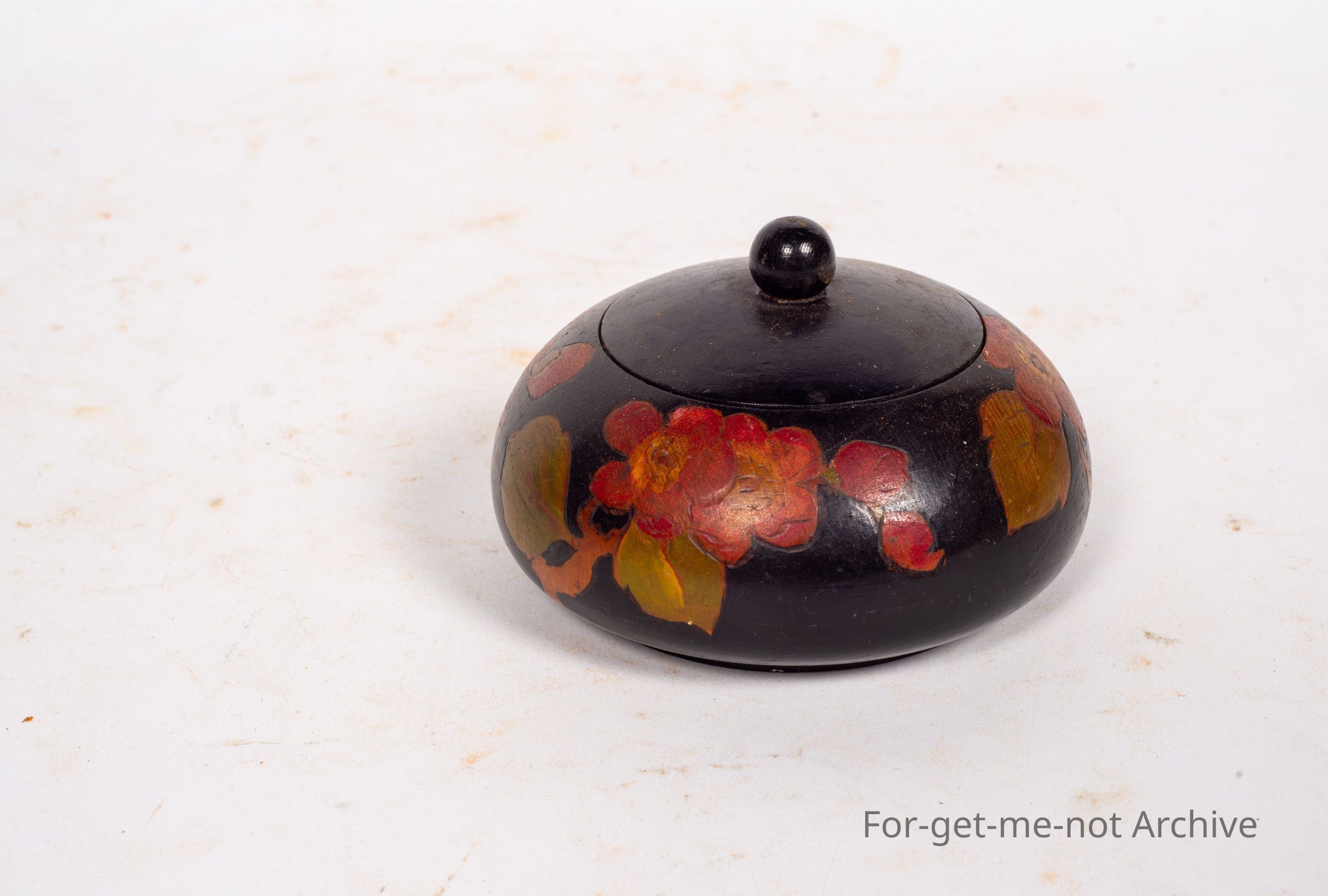 A little pin or trinket box, wooden. Once again, poker work on the surrounds of it, maybe in the form of roses, a lovely piece,