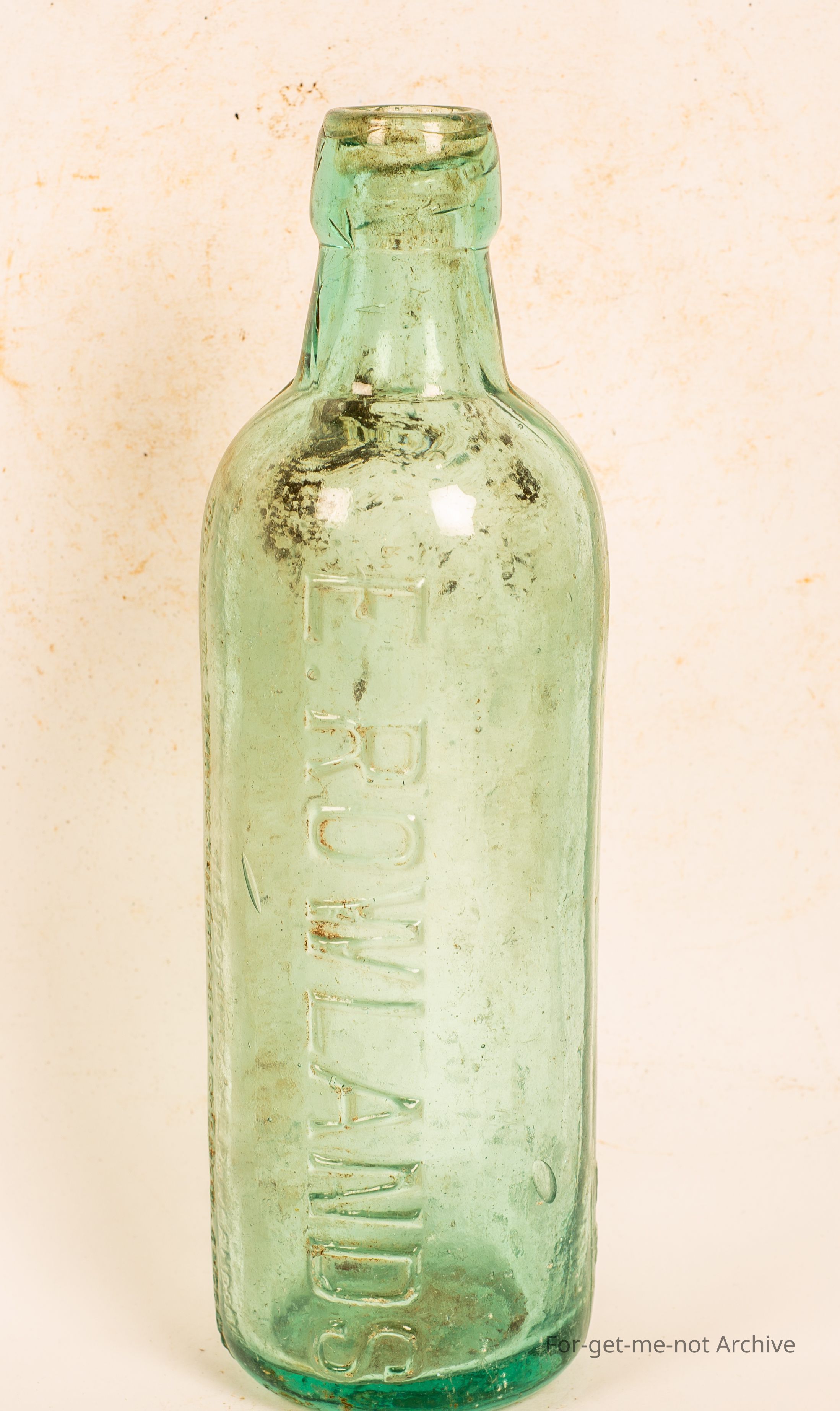 An early screw in top, large bottle 26 ounce just with E Rowlands, glass with bubbles. Probably quite old.