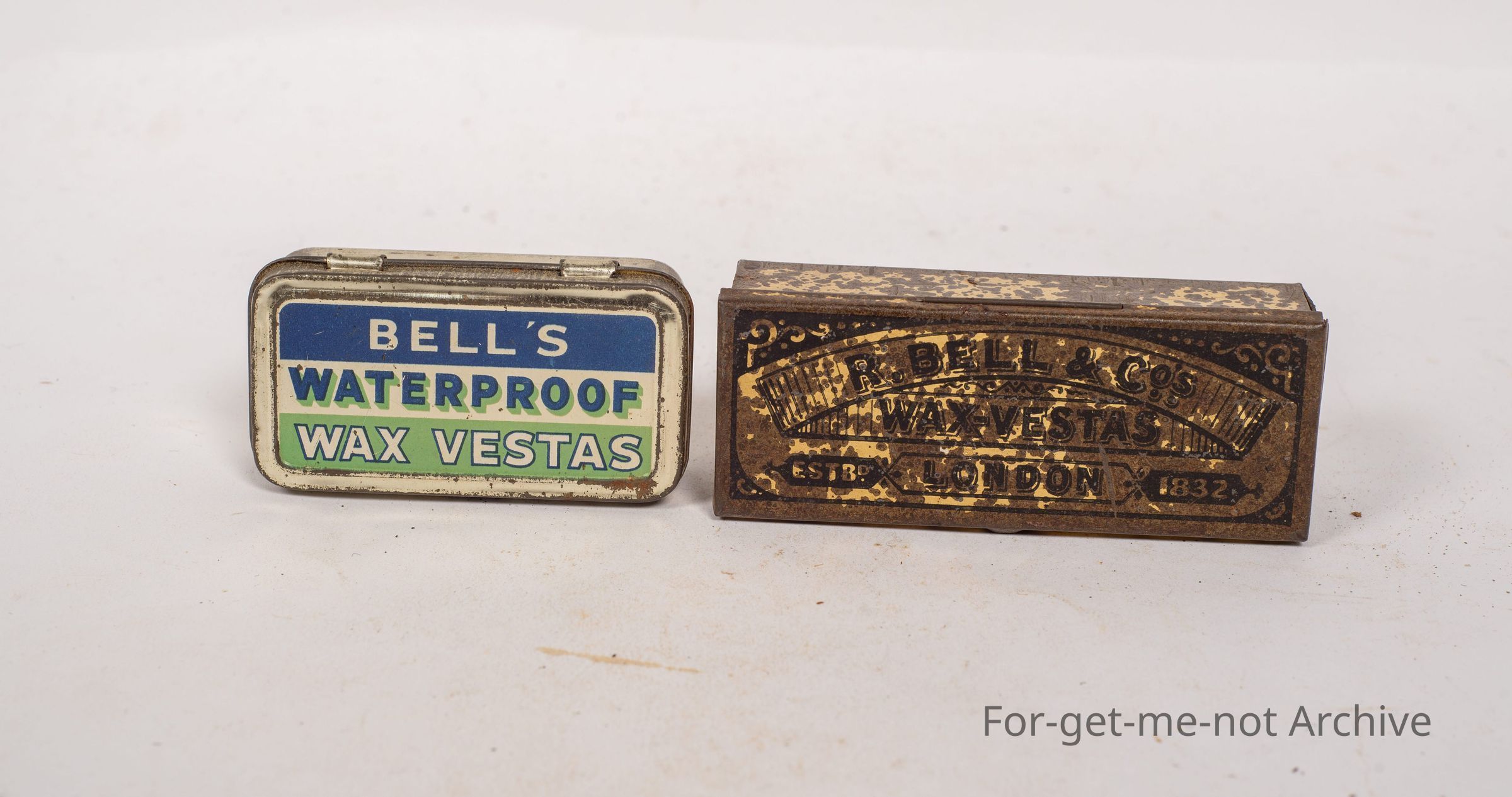 Another 2 Vester Tins, Bells Waterproof, Wax Vesters in pretty new looking condition. Another on very old R. Bell and Co. Wax Vestas London. that took