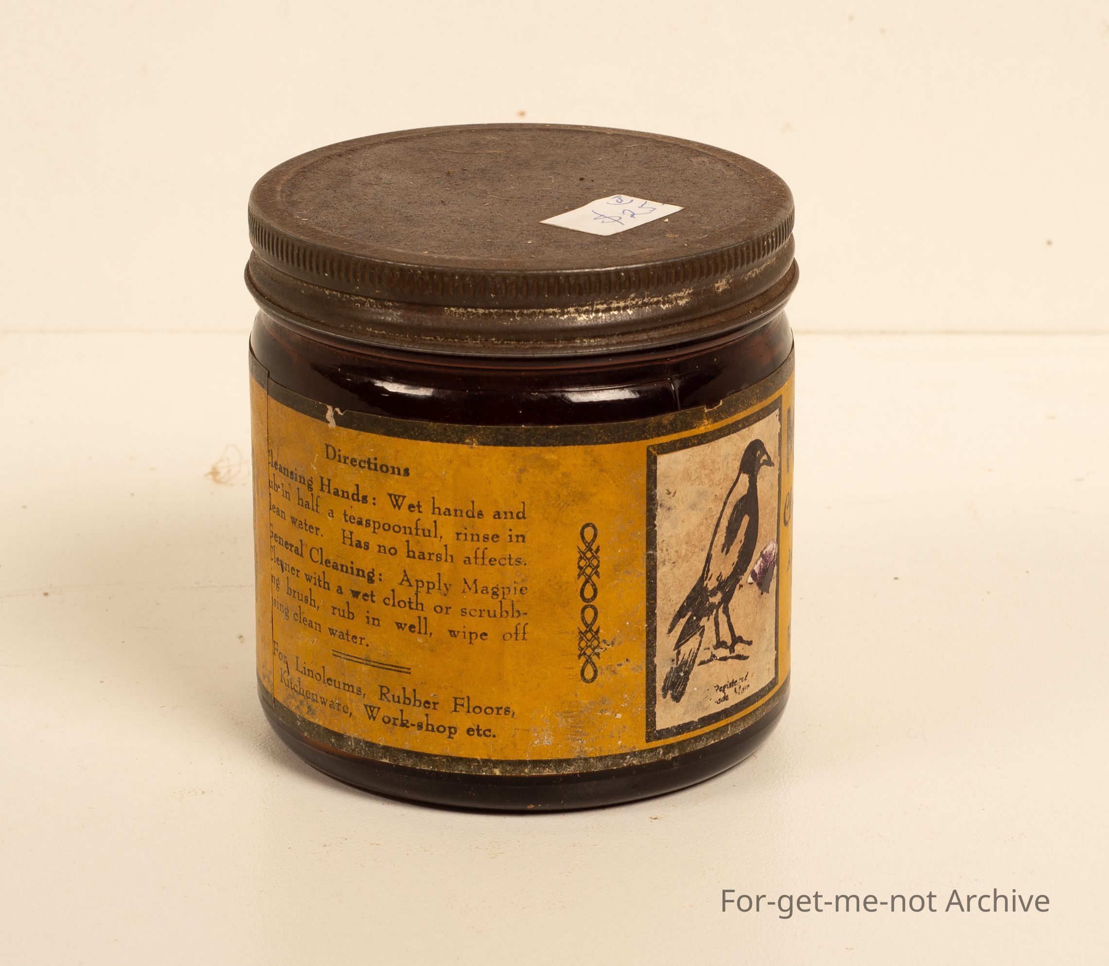 Paper Label, Cleanser of Dirty Hands for Household and General Use, Magpie Emblem. Lazarus Brothers, Collingwood