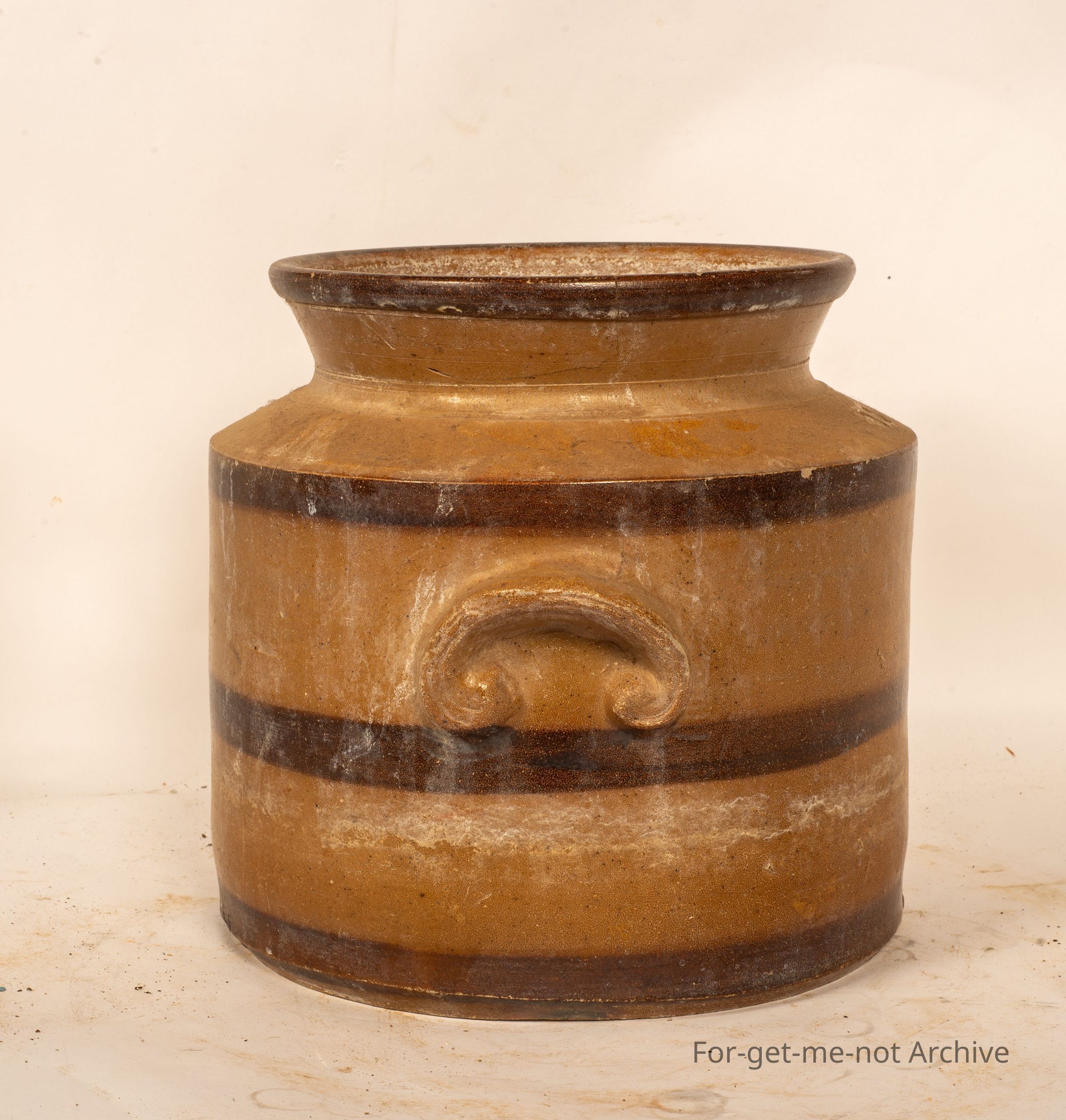 Stoneware Pottery, This is one of the medium sized storage jars. Early Bendigo Pottery. The usual, dark glazed bands. Both handles intact. Neck in good condition.
