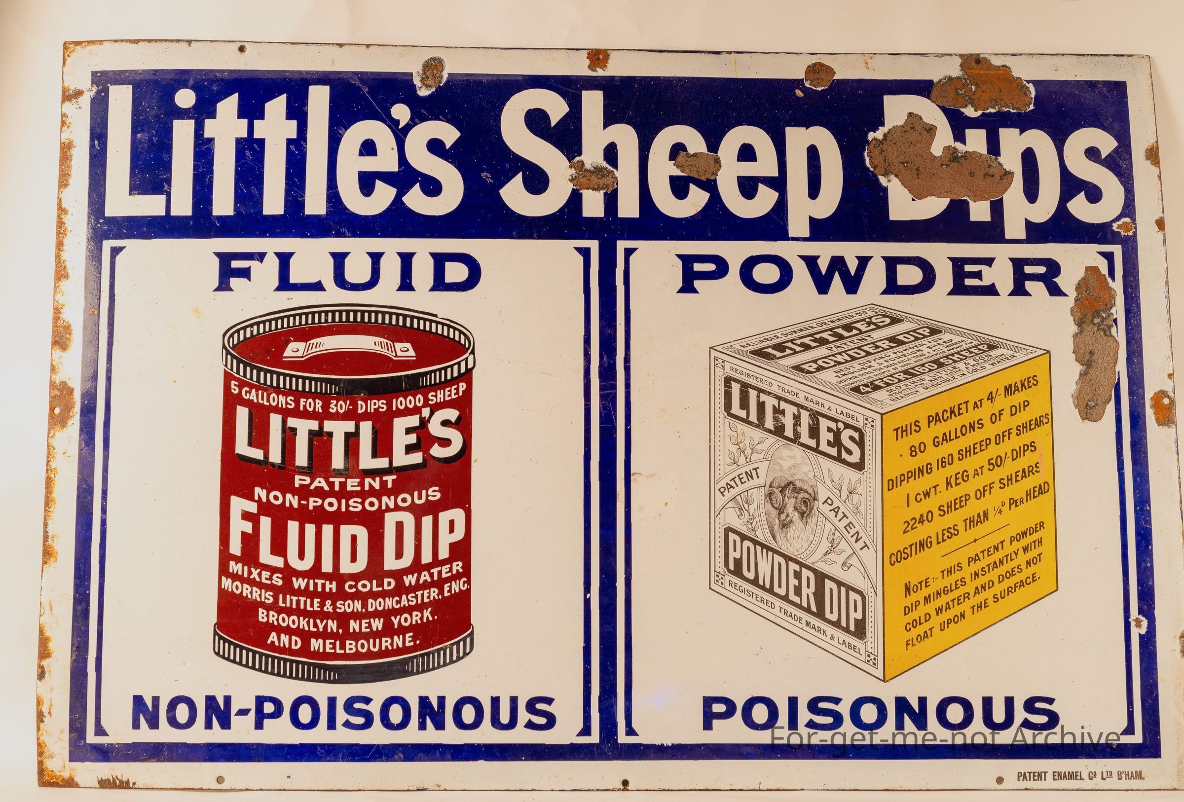 Little's Sheep Dips Fluid non poisonous and Powder poisonous, Pictorial 900x700aprox