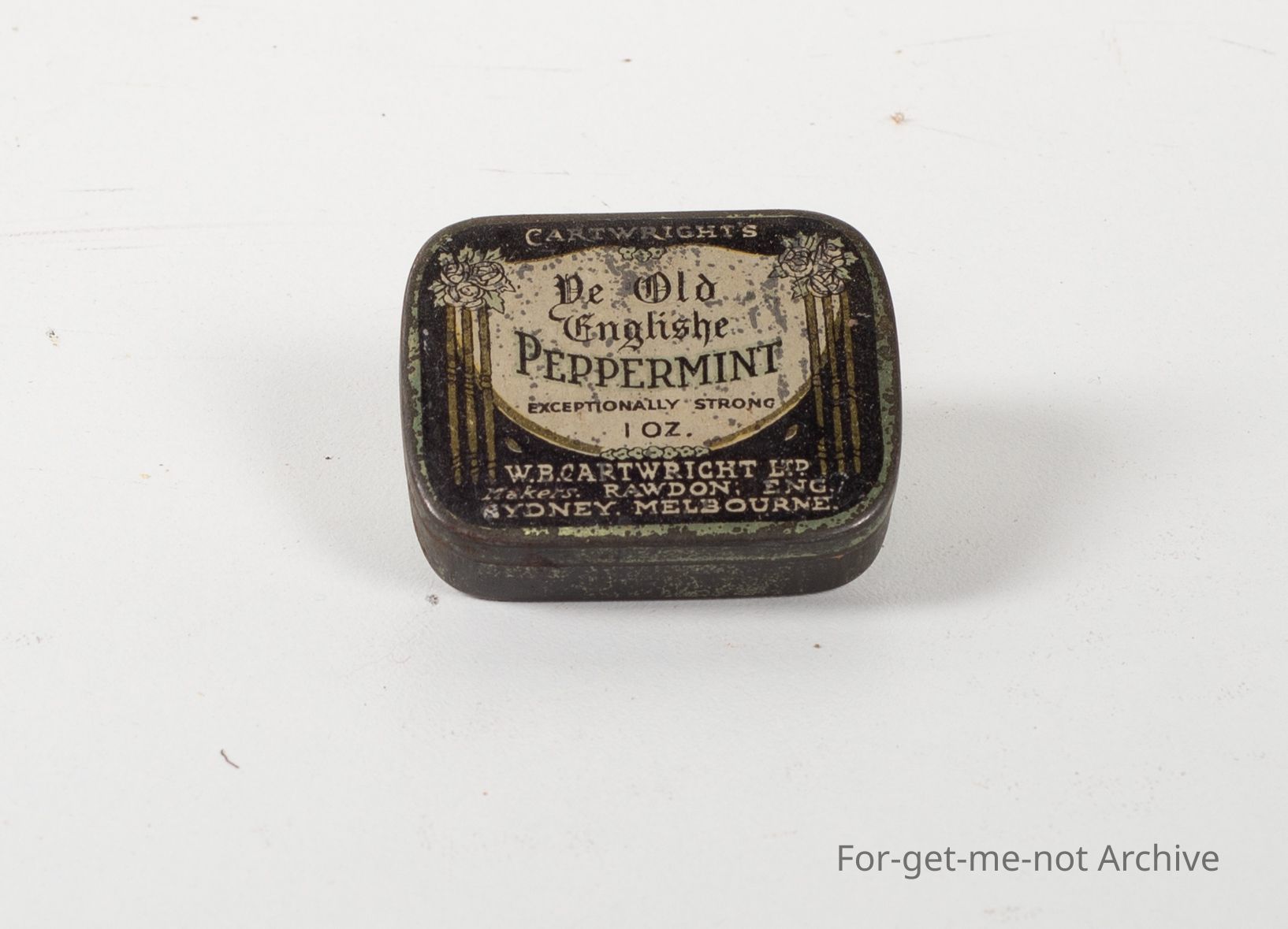 1oz Tin of exceptionally strong mints by "W.R. Cartwright" Sydney, England, Melbourne