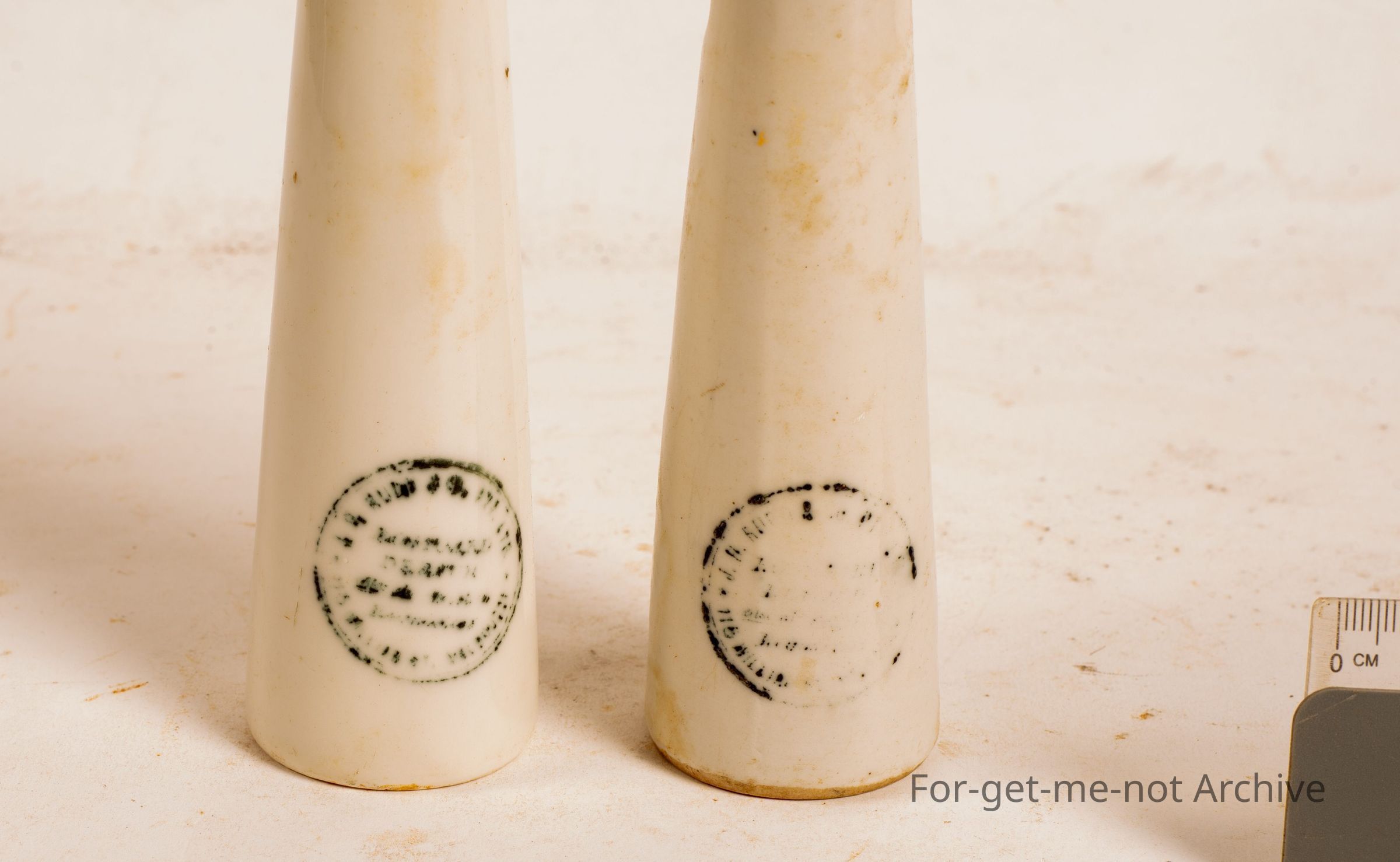 These are 2 ceramic sheep drench funnels, 1 ounce, and the other one is a 2 ounce, ink stamped. J.H. Rudd and Co. Melbourne. , 2 very rare pieces. Both bought as mystery items from an antique shop.Collection