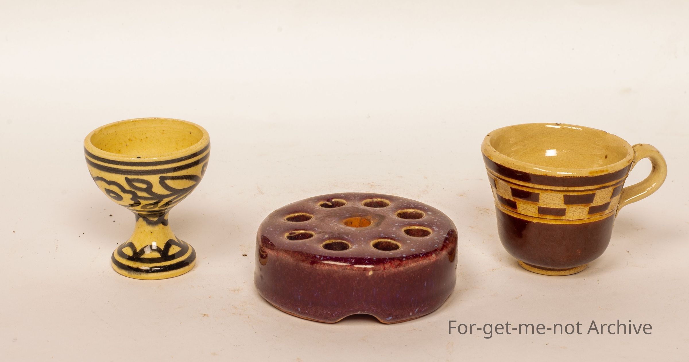 3 x little pieces in egg cup, a tiny cup, and a little flower row flower rose frog.