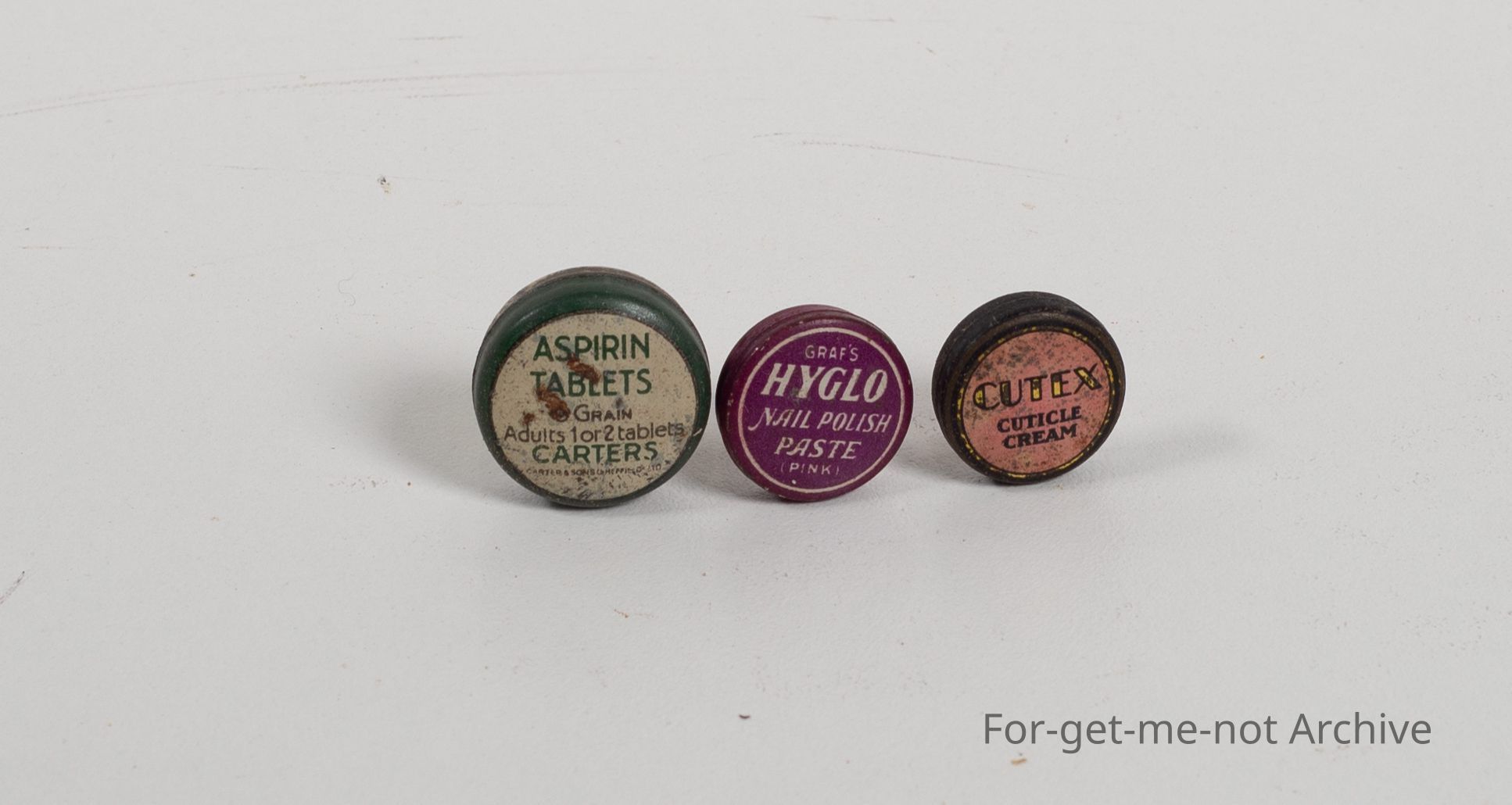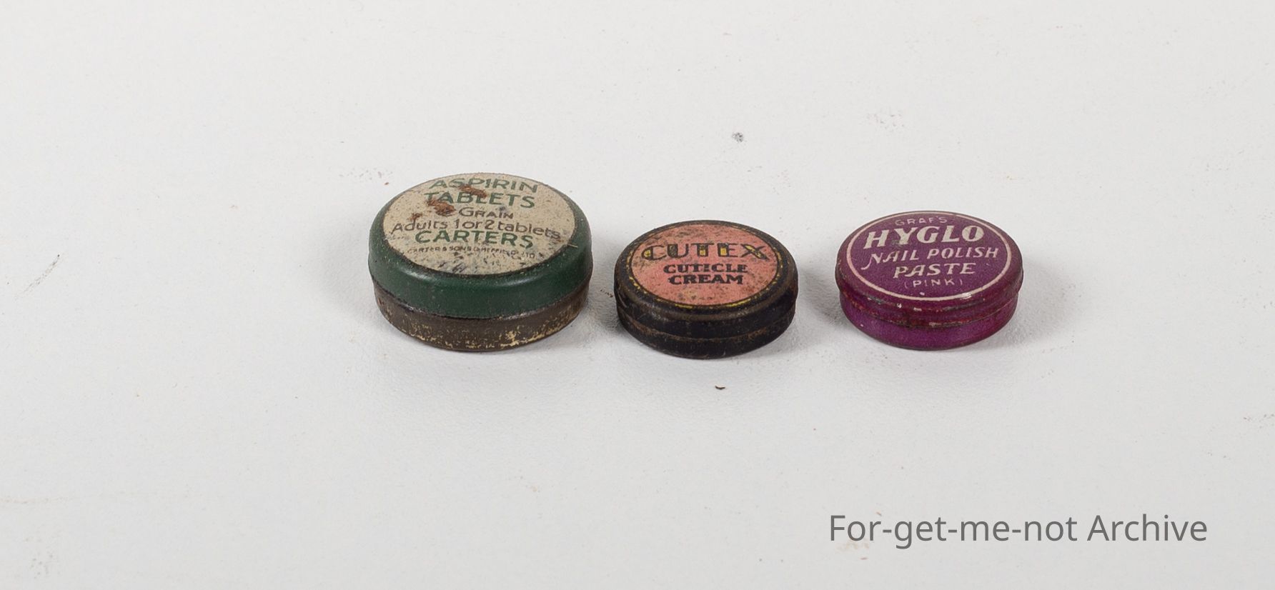Aspen tablets from Carters, Q-Tex cream, High Flow nail polish