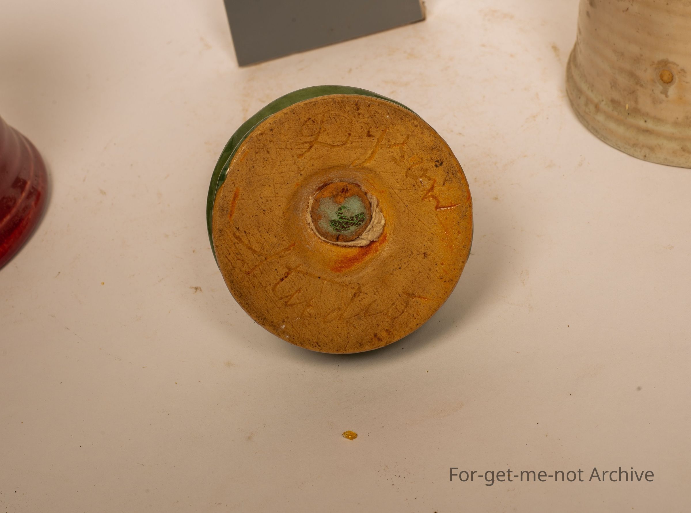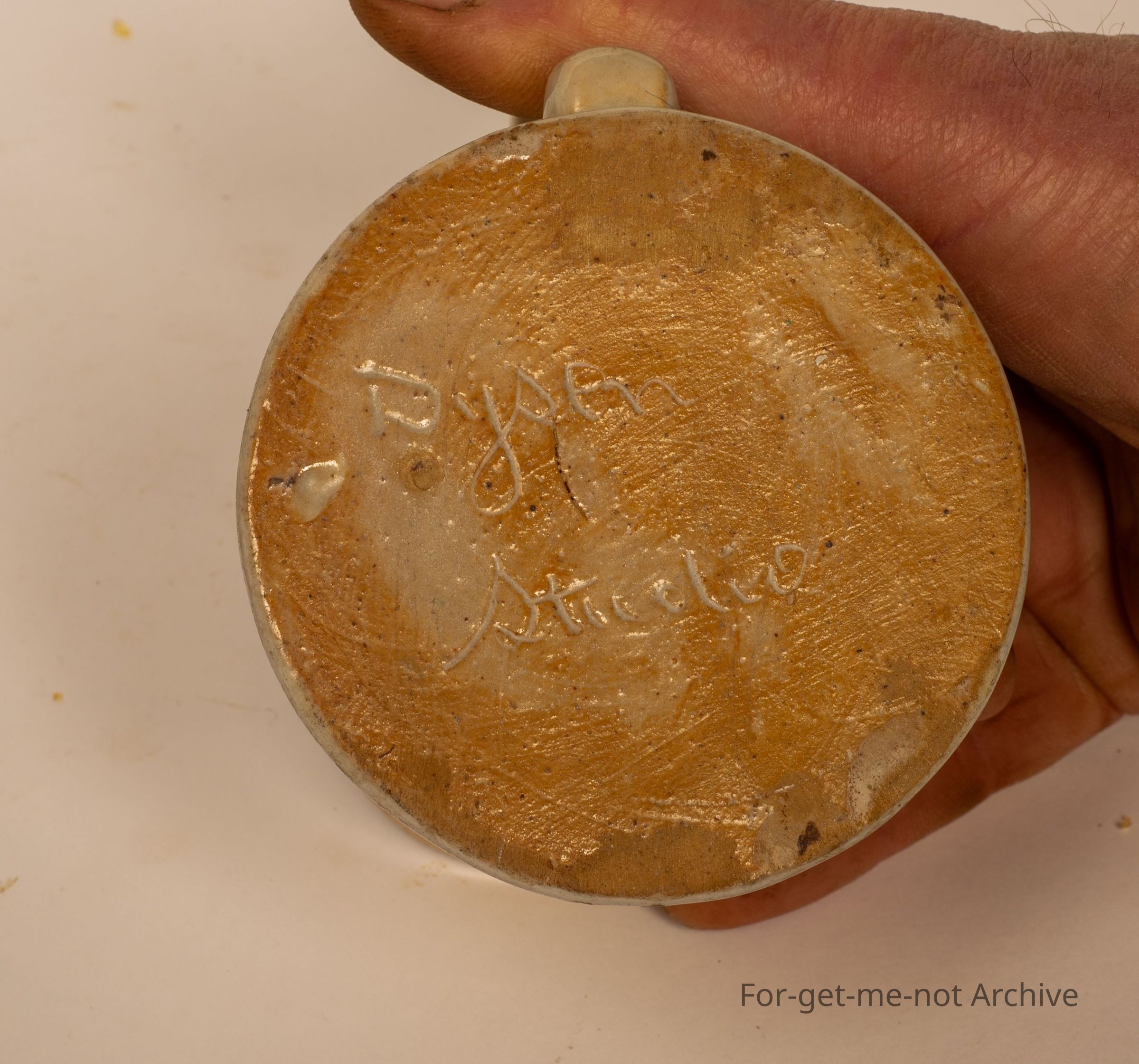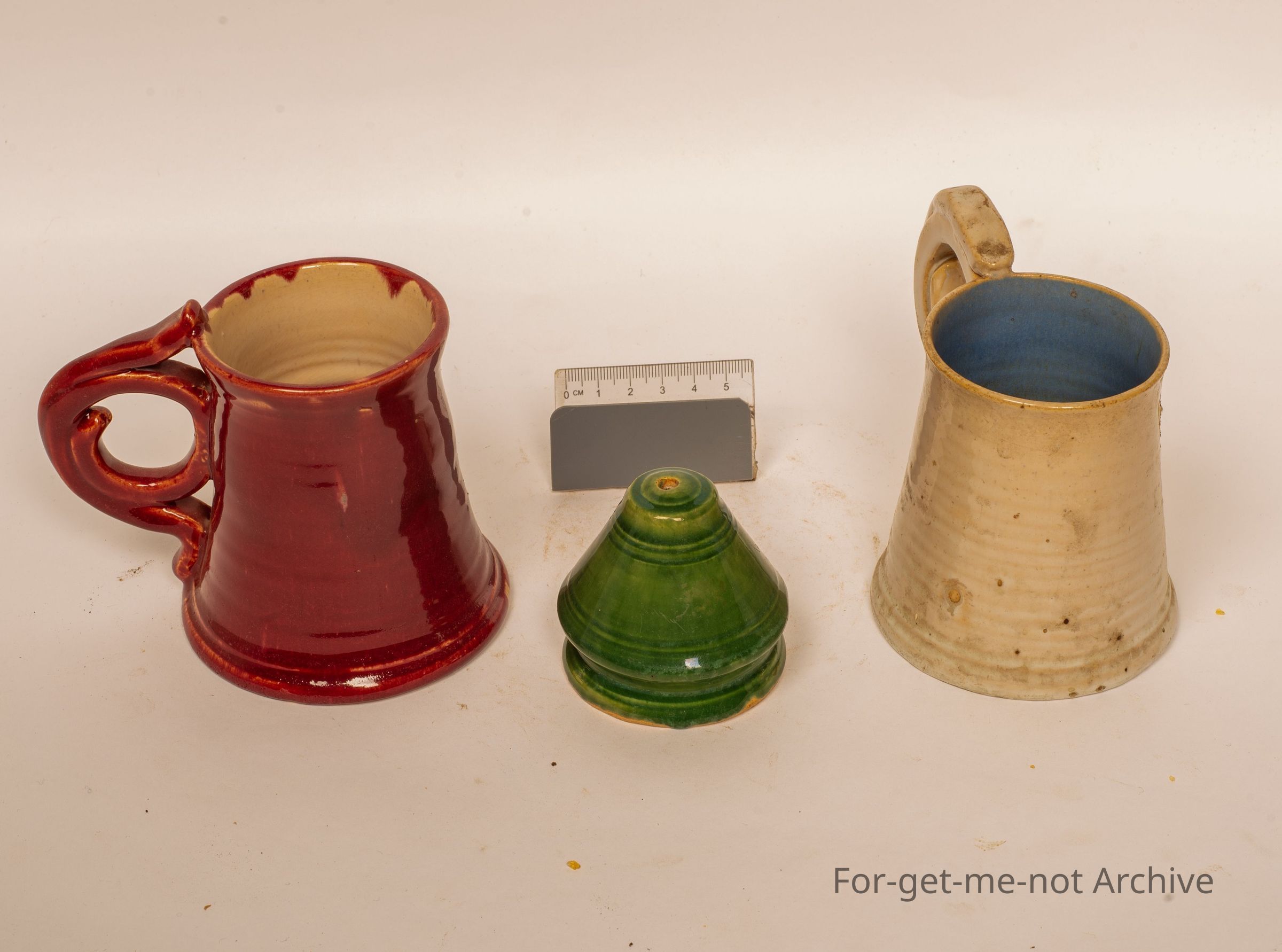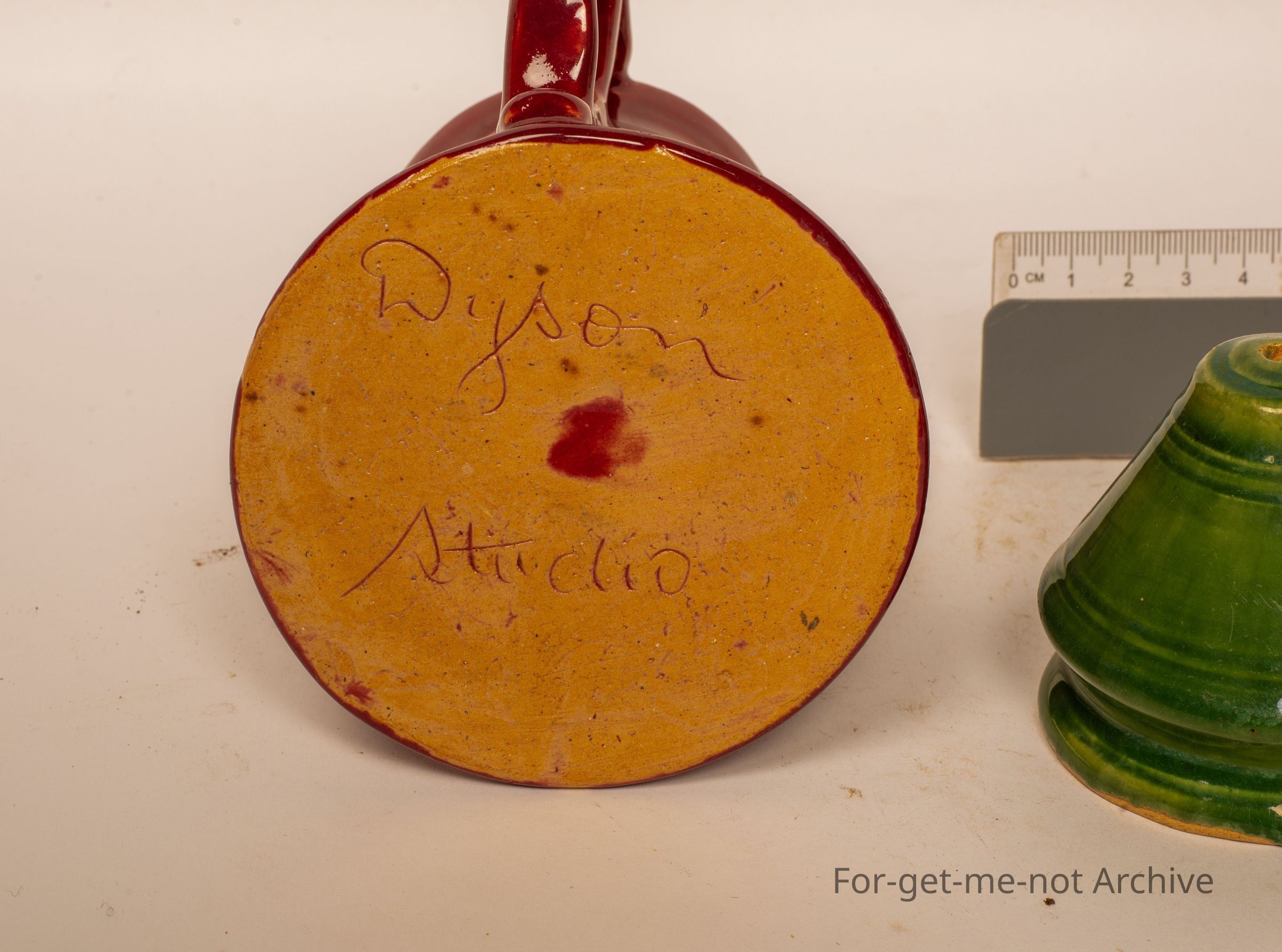 This is three pieces from Dyson Studio, 2 cups with the wonderful classical handles, and a small salt shaker, all signed, all in good condition.