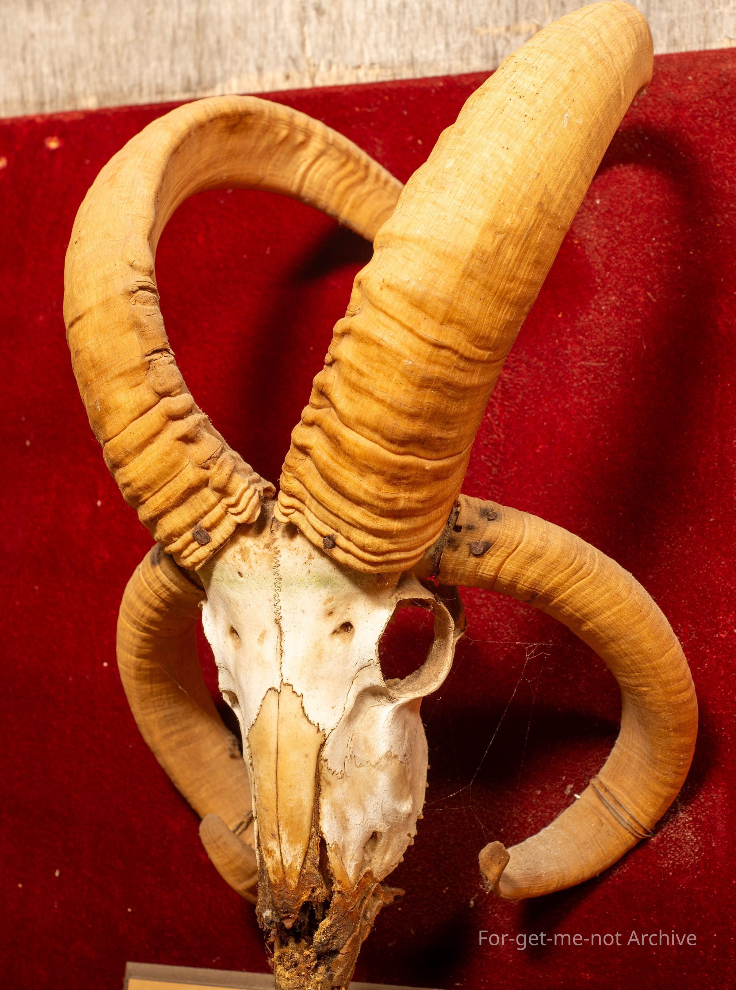 This is pastoral industry. This is the skull of a throwback to the origins of merino sheep. It is called a Jacob's sheep. The Feature is for horns, complete skull with the horns in good condition, A very interesting animal. All these have died out, and gone.Collection