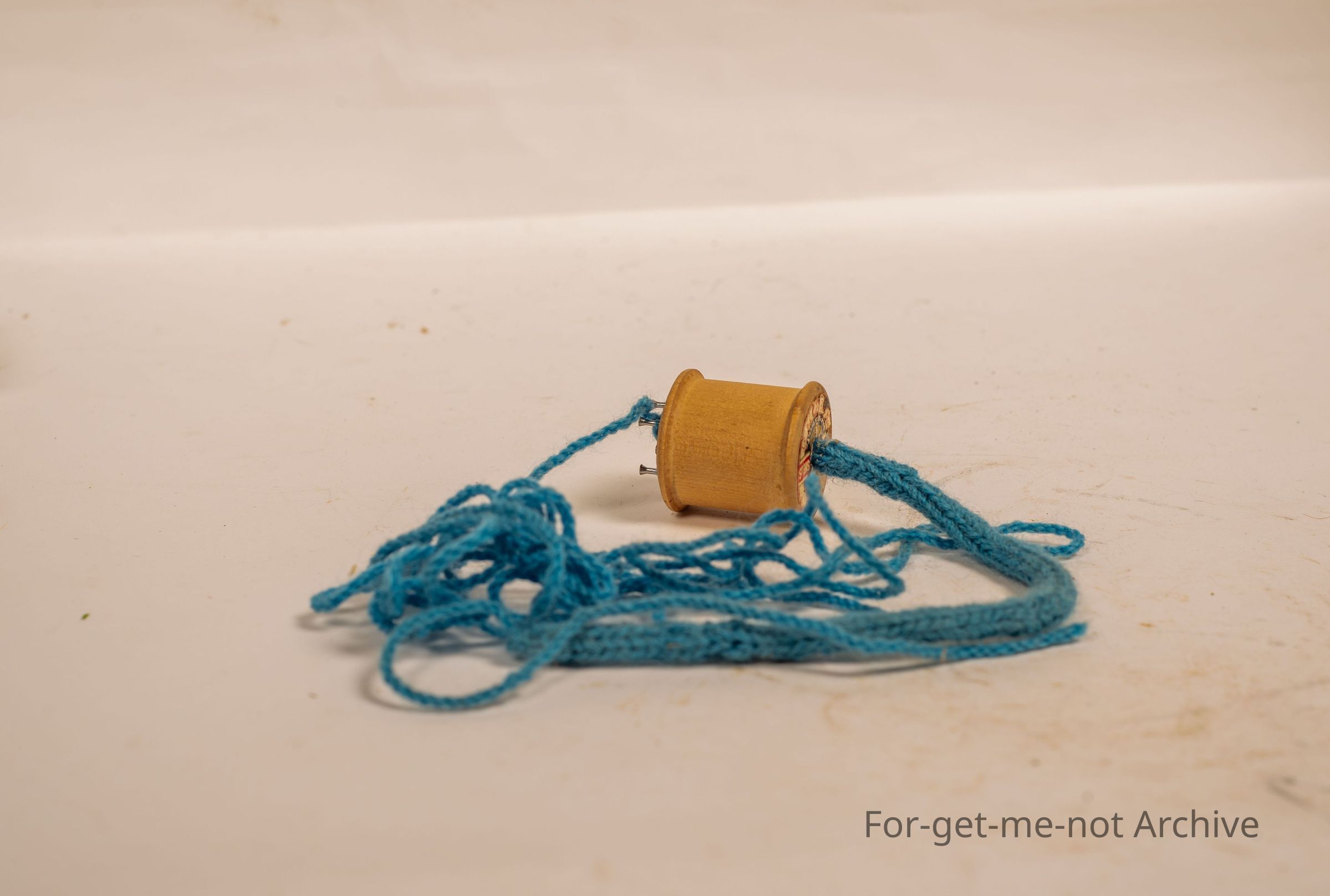 A cotton reel used to teach kids how to, make woollen products. Braiding cord