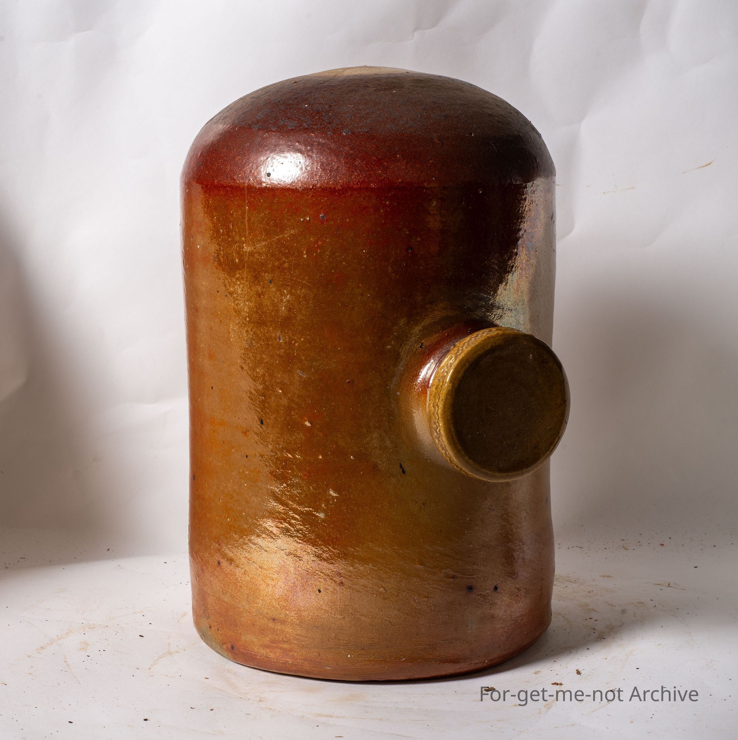 Ceramic pottery. This is an unusual piece, made by Bendigo Pottery from information from Dennis O'hoy who worked at Bendigo Pottery as a boy. These things, according to Dennis O'Hoy, were acid jars in transportation. They were, laid down on their side with the filler cap, on the top to reduce breakage and damage from the acid.Collection