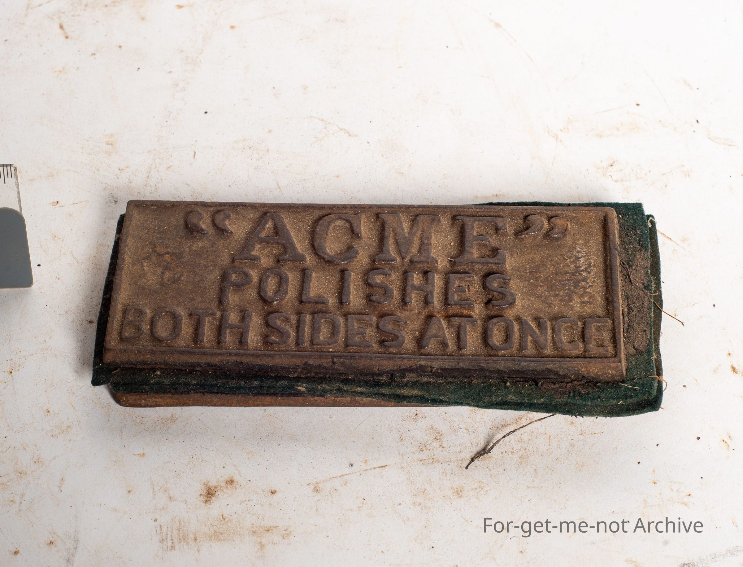 This is an Acme, polishes both sides at once for polishing knives, the old, iron knives. The 2 polishing pieces I've felt are still intact, in good order.