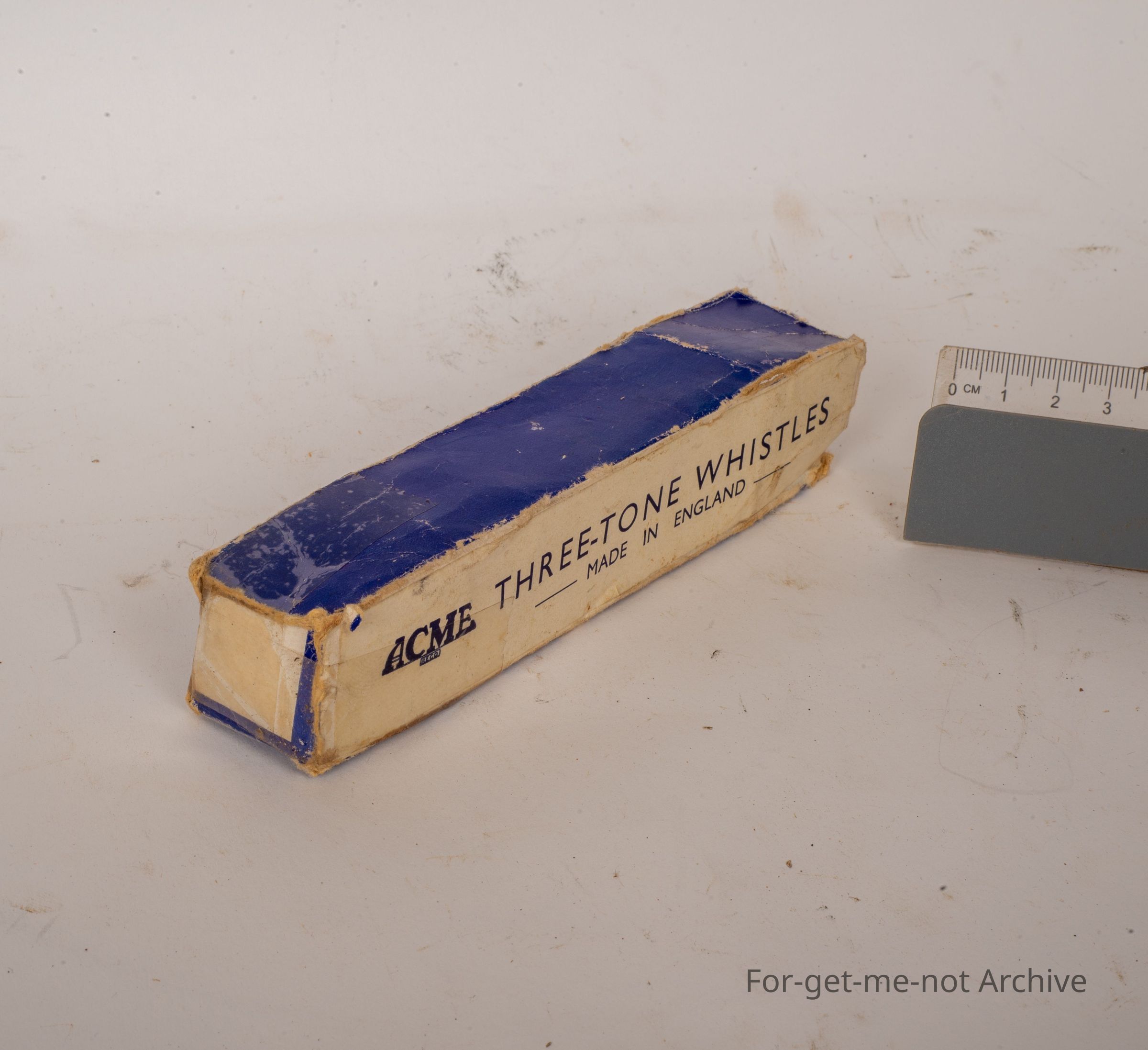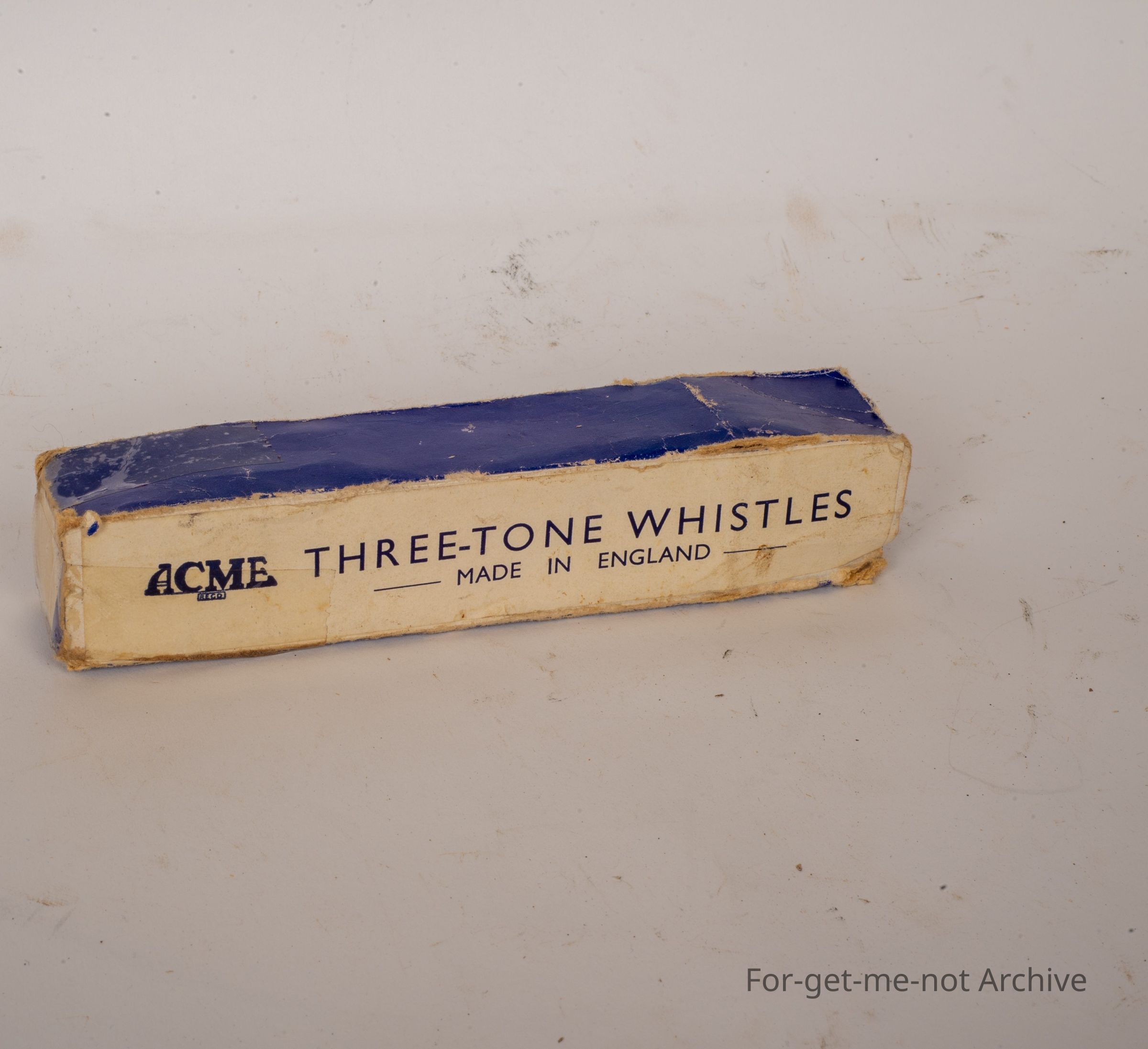 This is the cardboard packaging box of an Acme 3 tone whistle made in England. Lovely bit of original packaging.