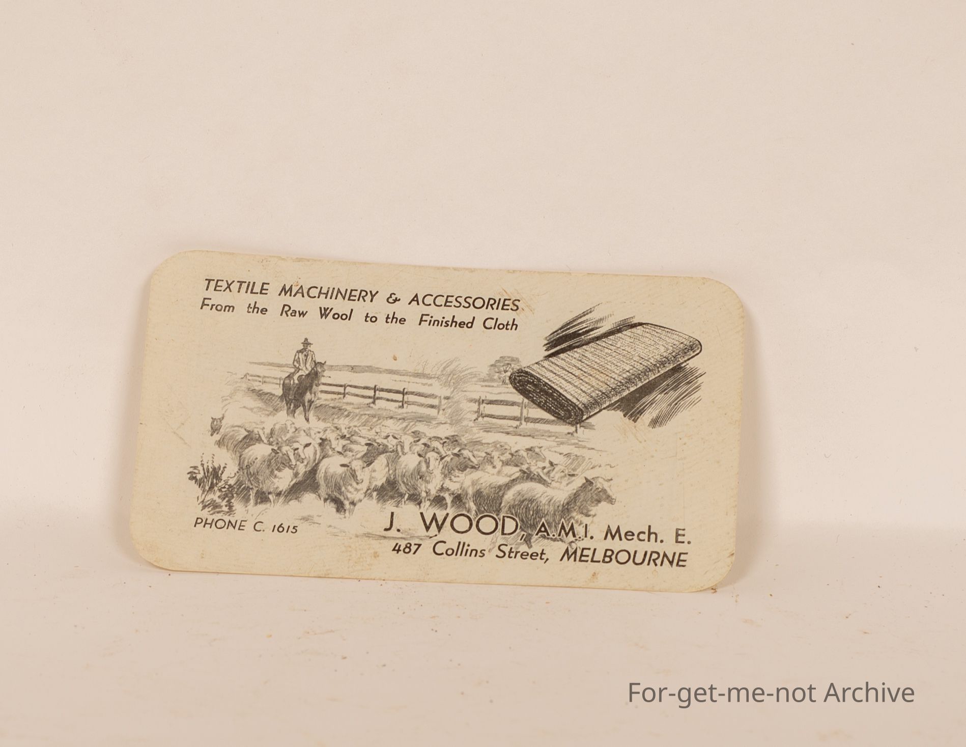 Calendar advertising J Wood Merchandise, Collins Street, Melbourne with Scene of Sheep.