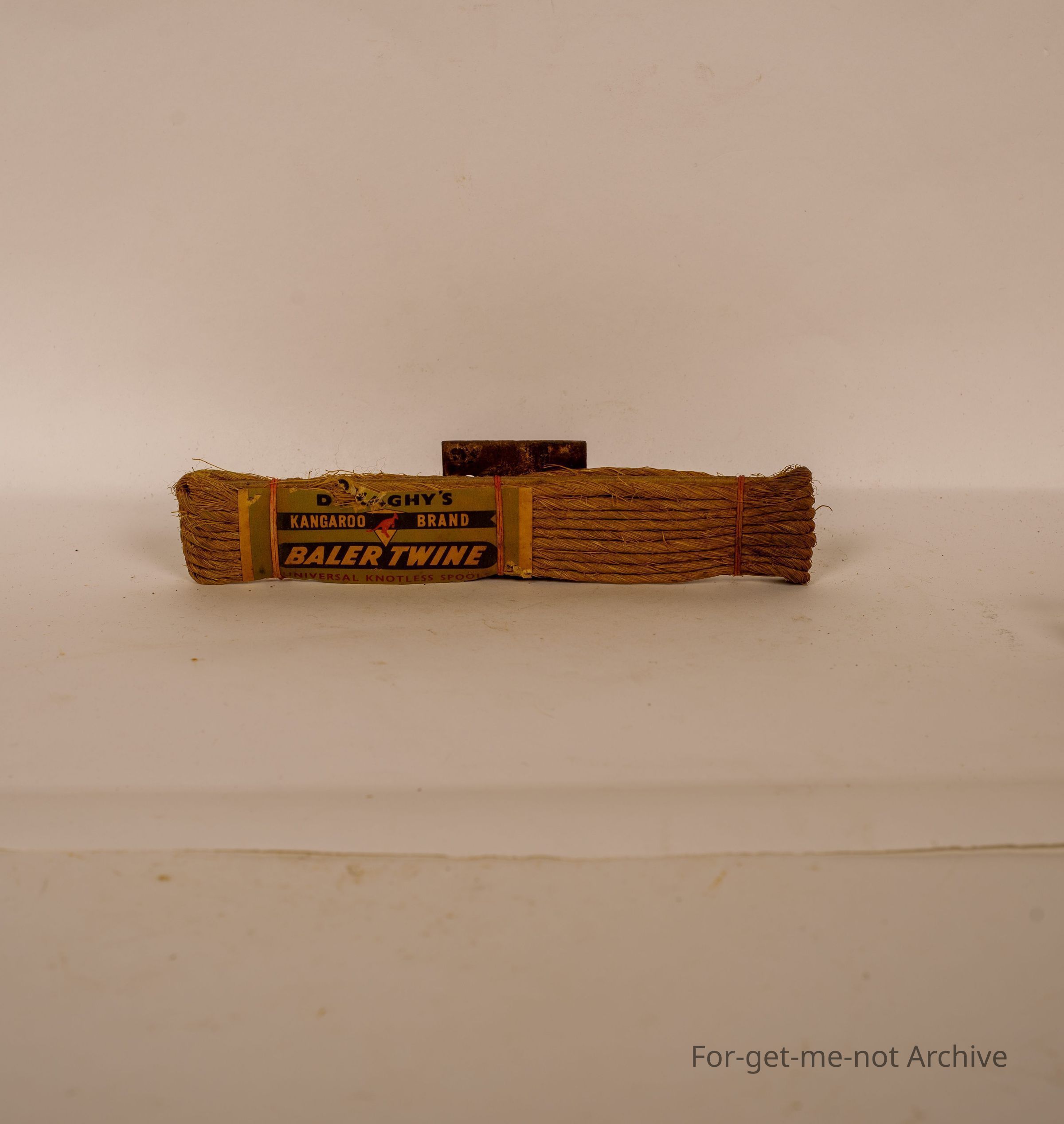 Small sample piece of Donaghy's Kangaroo brand Baler twine, still intact with wrapper.