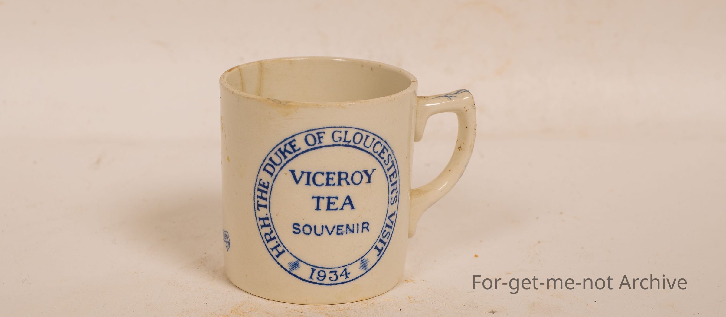 Another advertising cup ceramic, vice royal tea souvenir 1934. HRH, the Duke of Gloucester visit.