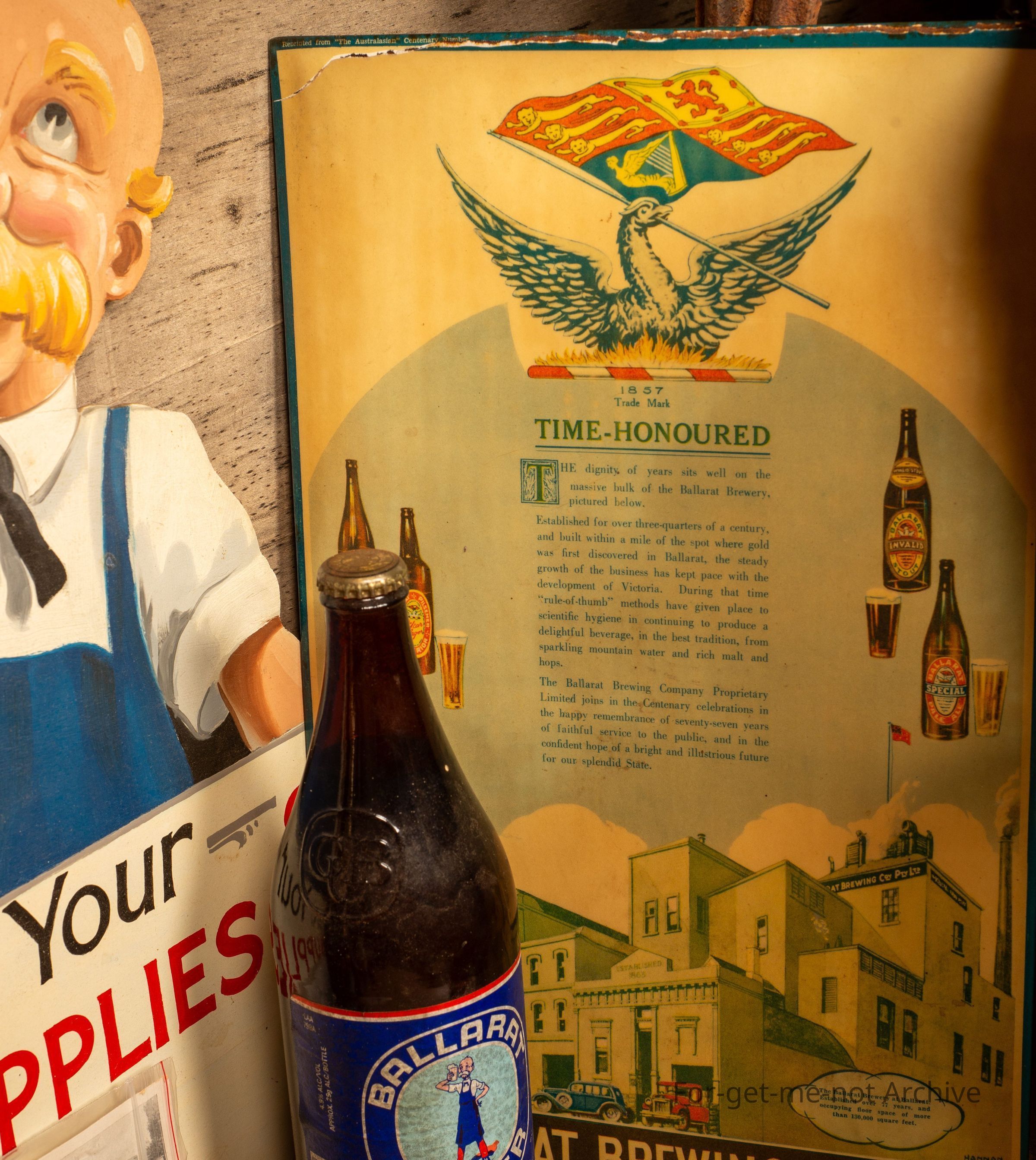 Counter advertising piece celluloid from Ballarat Brewing Company. Advertising, Brewing Company owned hotels.