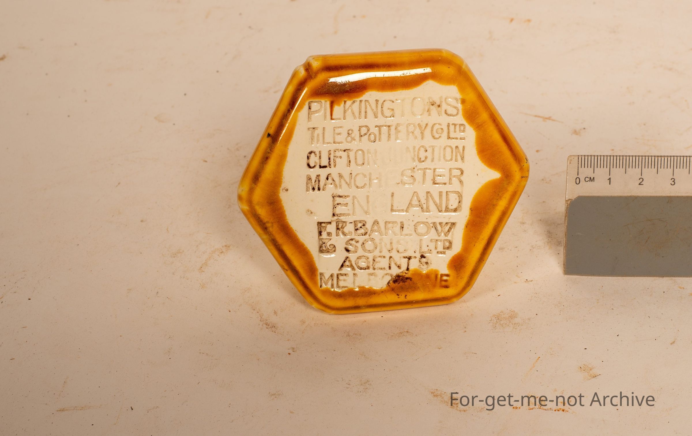 This is an advertising piece for, Pilkington's Tile and Glass Manchester, England. The agent is Barlow, Soul Agents, Melbourne