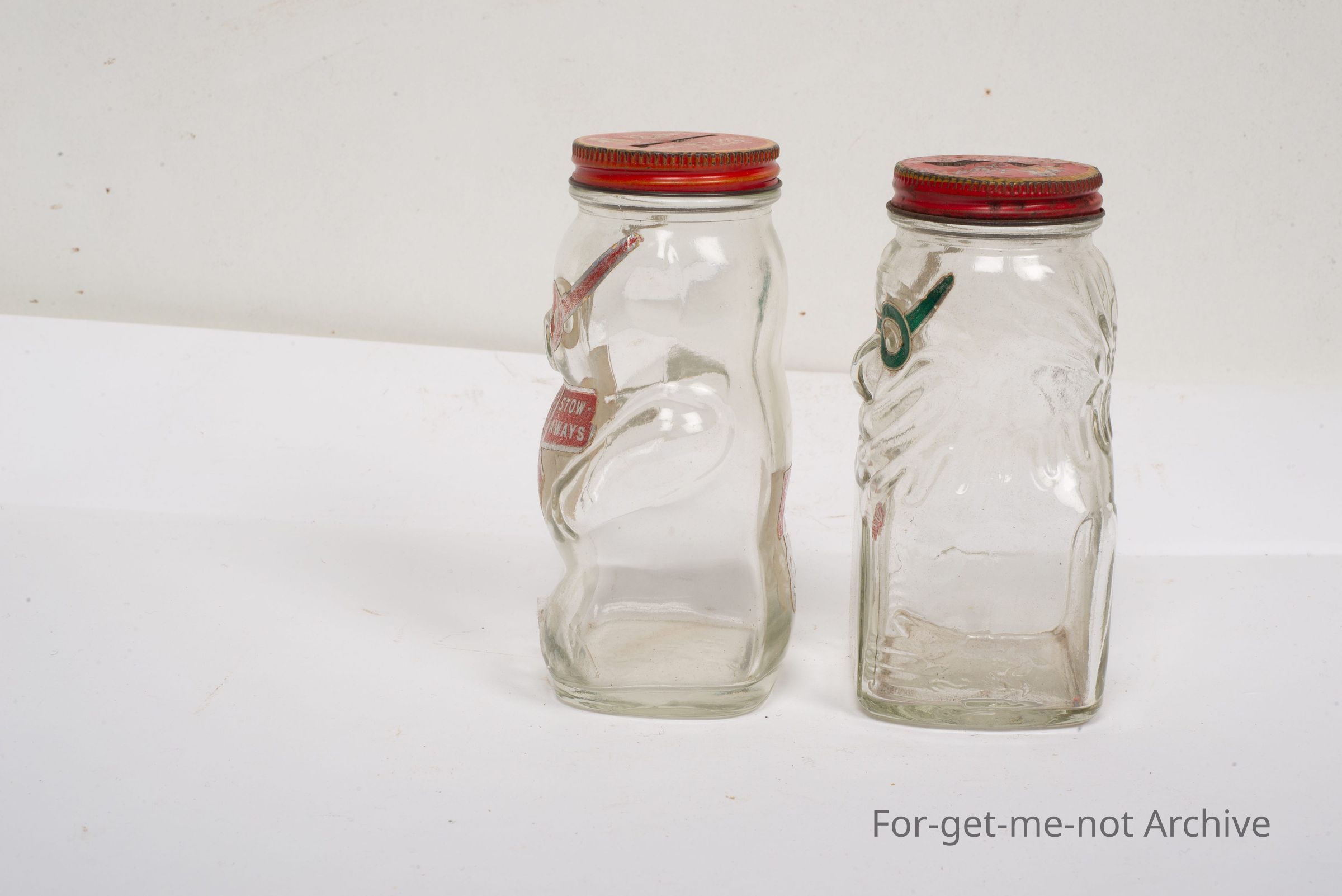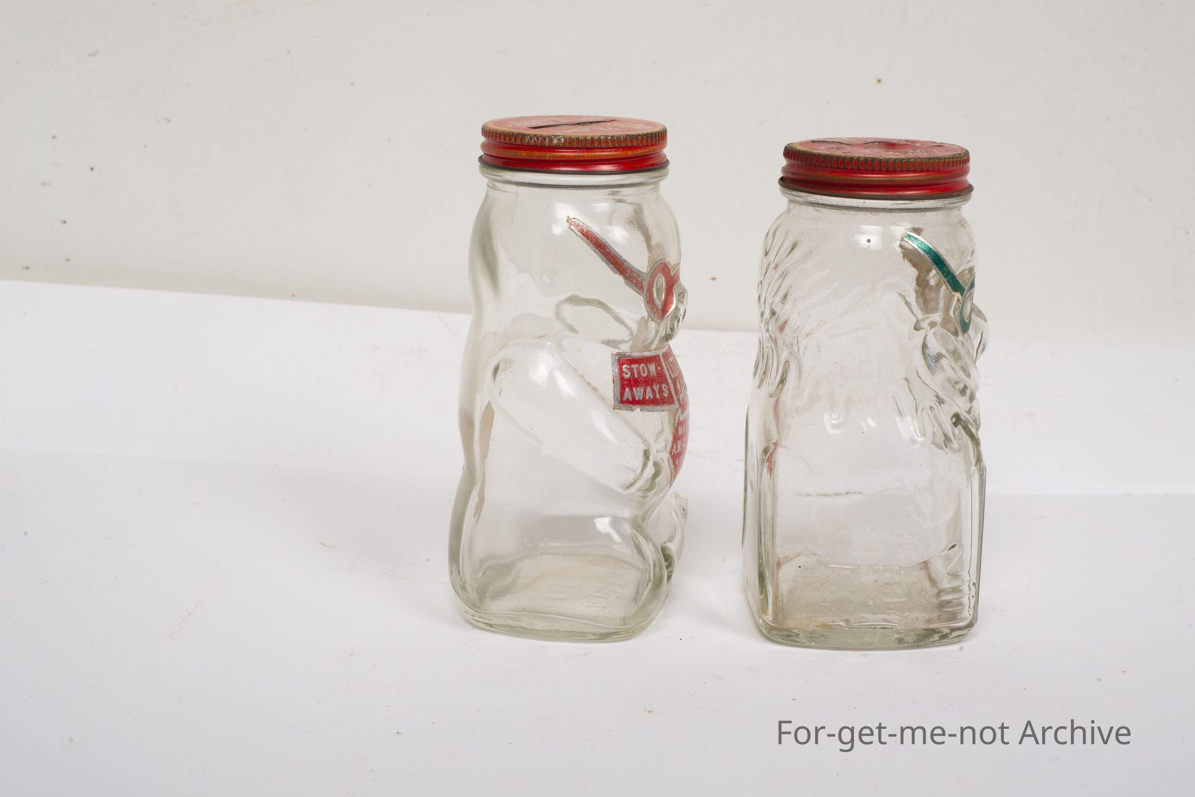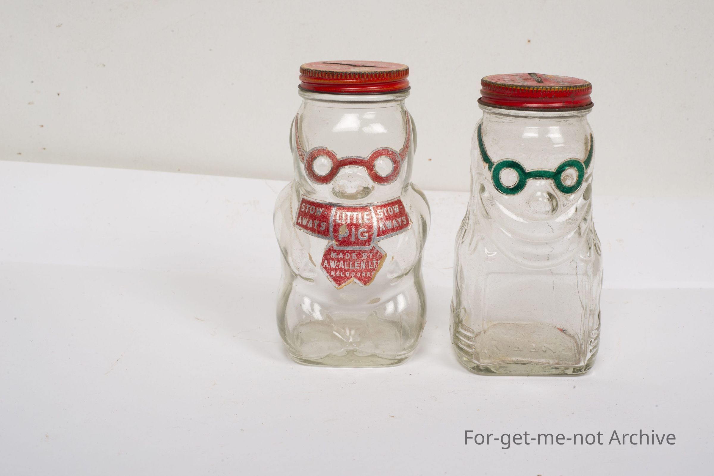 2 bottles. It says Stowaway Little Pig, so they're money boxes, put out by AW Allen Sweets, Melbourne. Both in good nick. a pair.