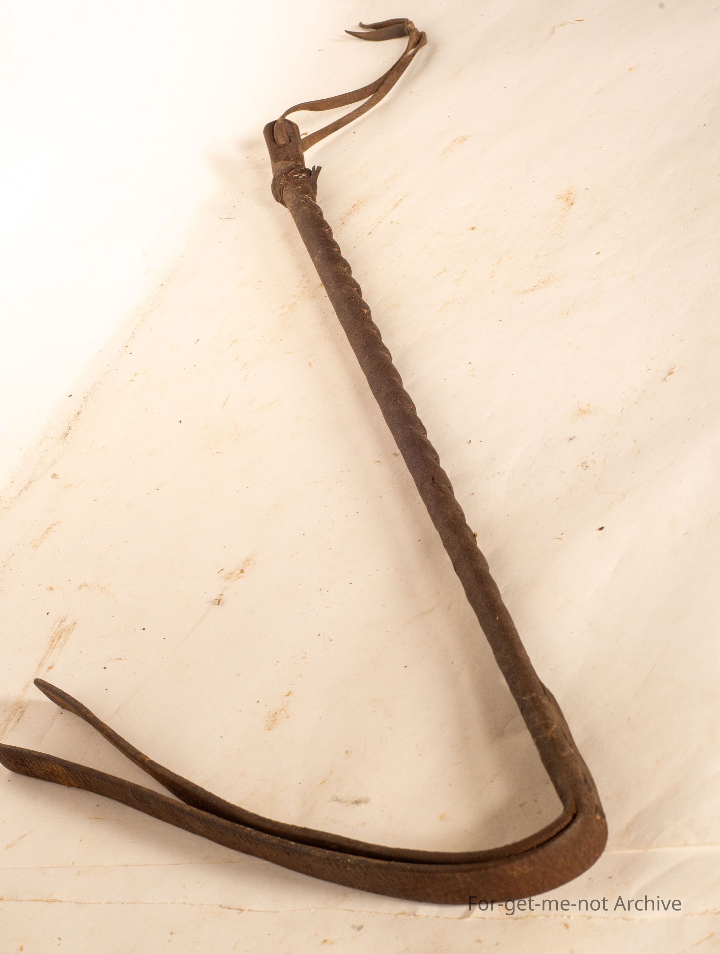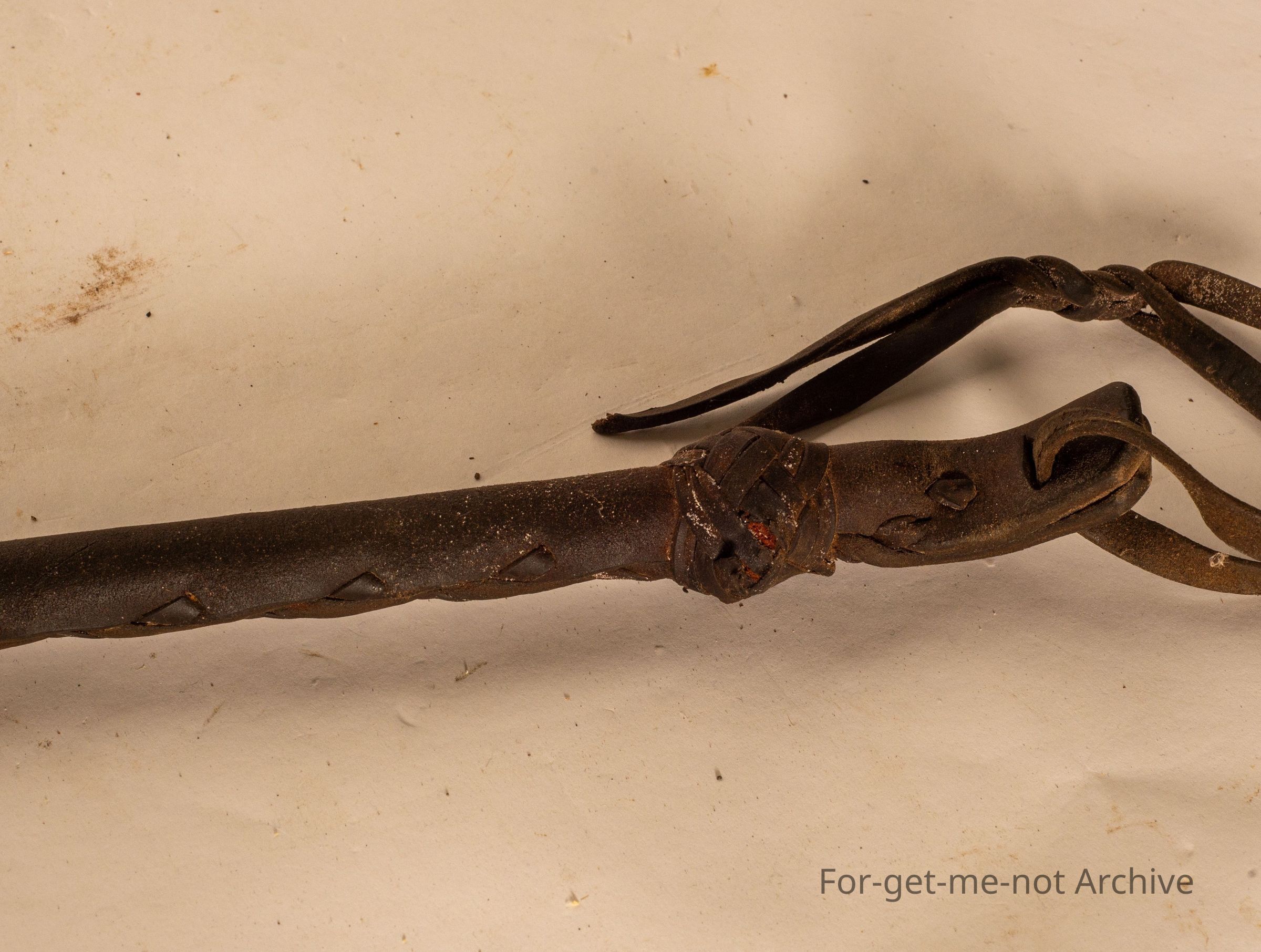 This is a lightweight leather whip, commonly called a flapper. These whips were virtually just to slap, the goat or whatever animal in a cart to get it moving.,