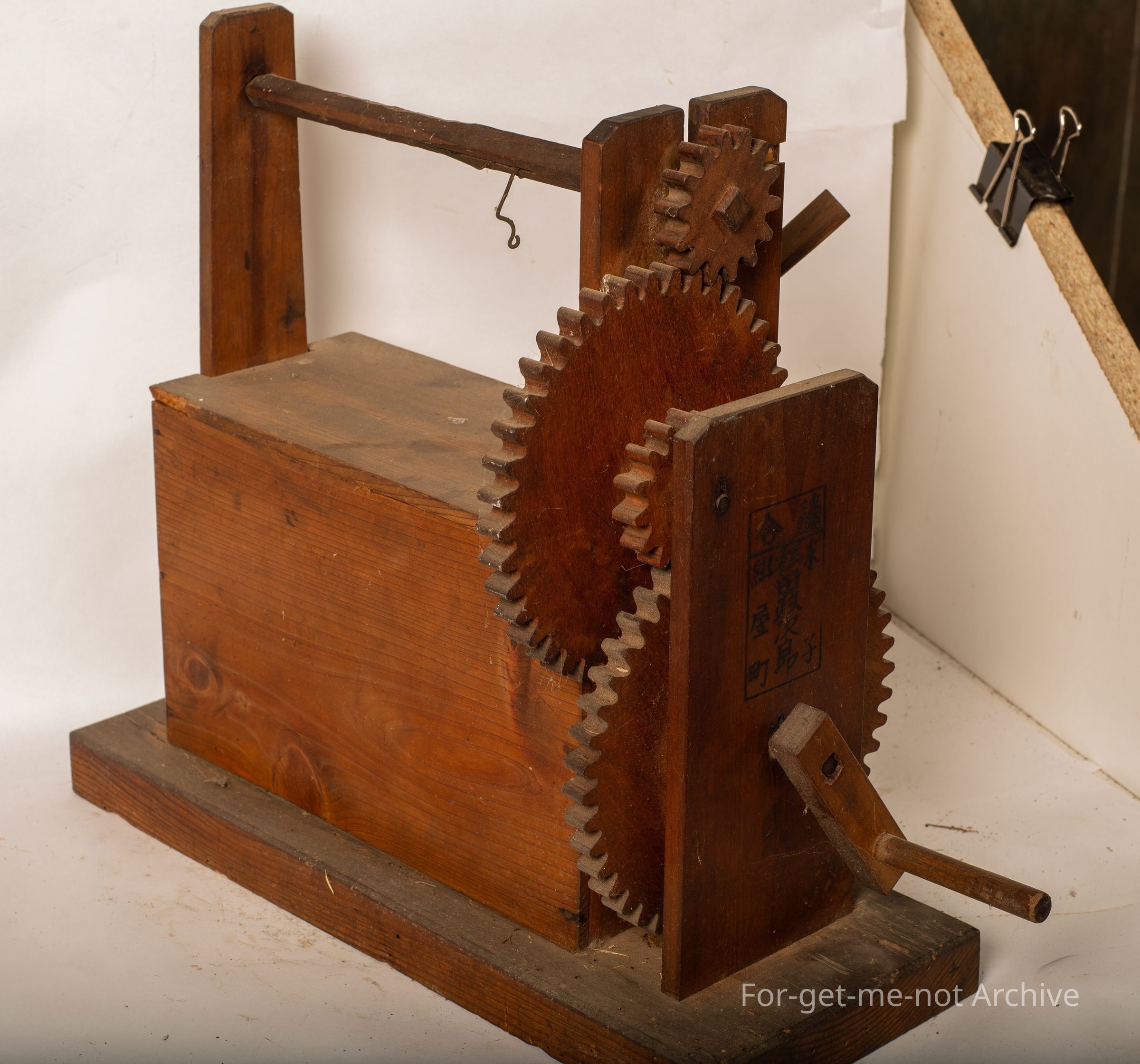 This is a total wooden, apparatus for unwinding the silk from the, cocoons of the Japanese silk worm. It unwinds and puts onto a spool at the same time. Beautifully made. Quite a frail machine but still in working order.Collection