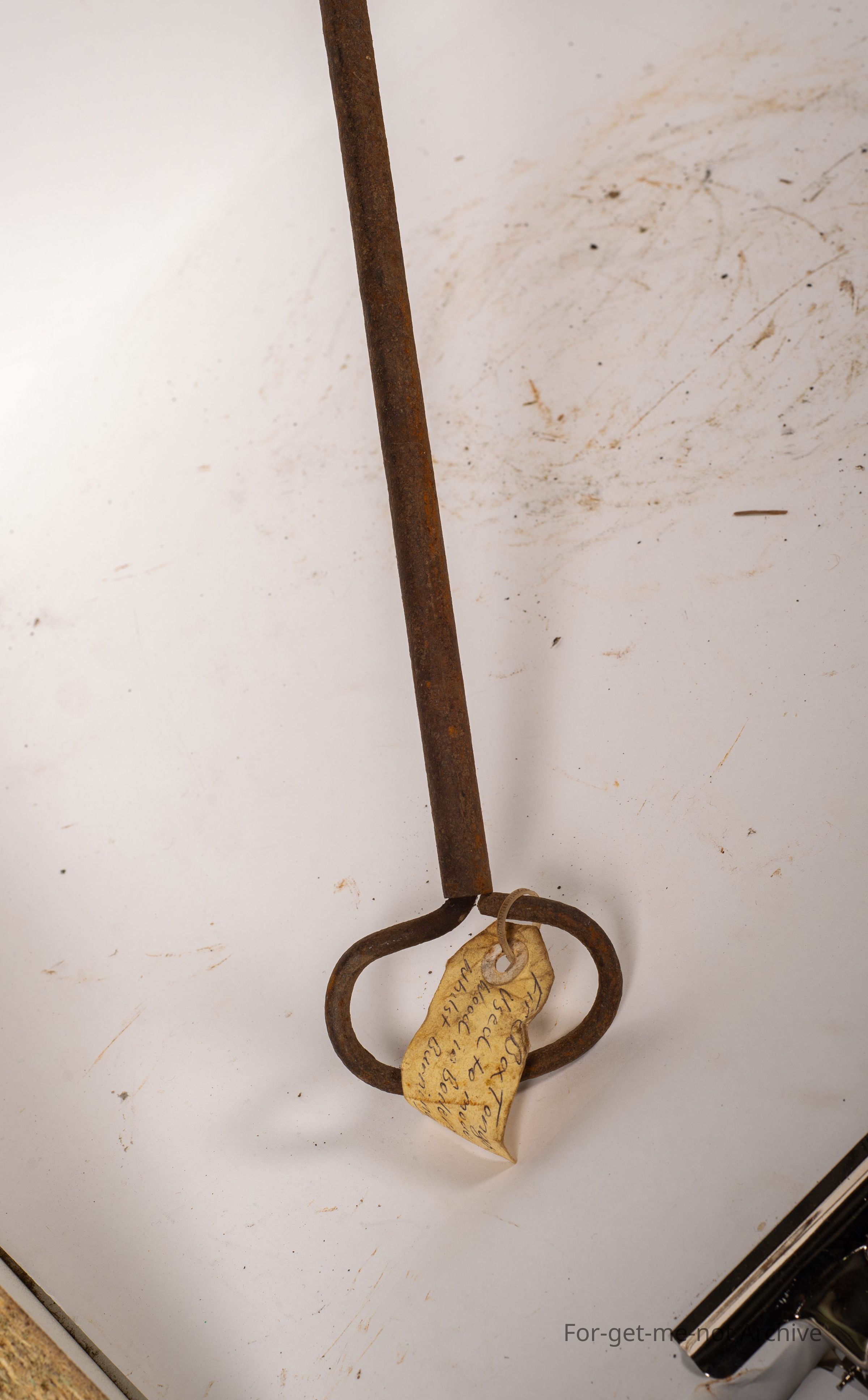 This is, an apparatus with a closing grip on it, like a, claw that runs through a hollow tube that's turned on the handle on the end. The reason was for turning, pieces of wood in a boiler. A small boiler like the Dixie boiler, to make sure that there was even burning within the case of the boiler. This one is wonderful condition. Quite a rare tool to find.Collection