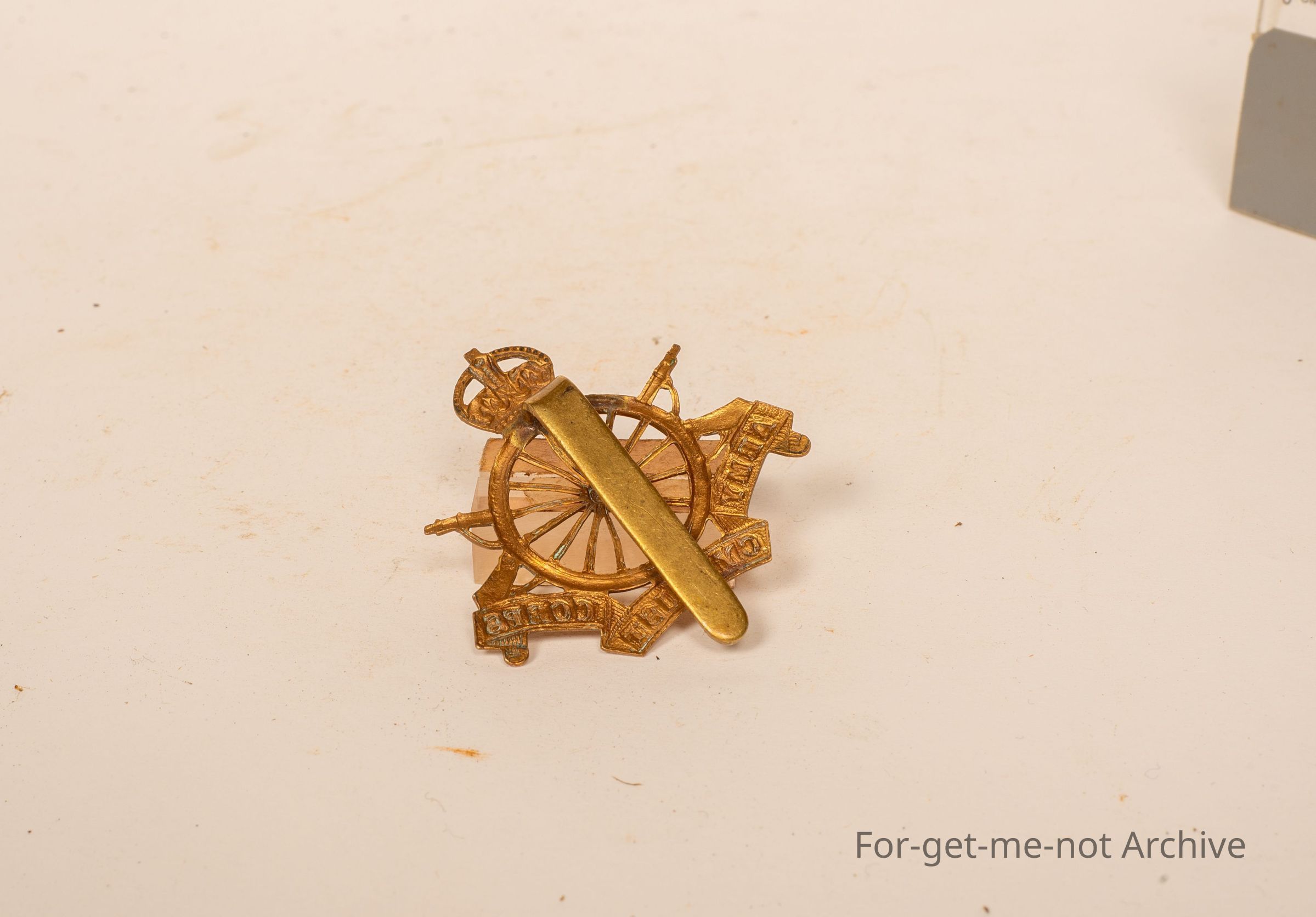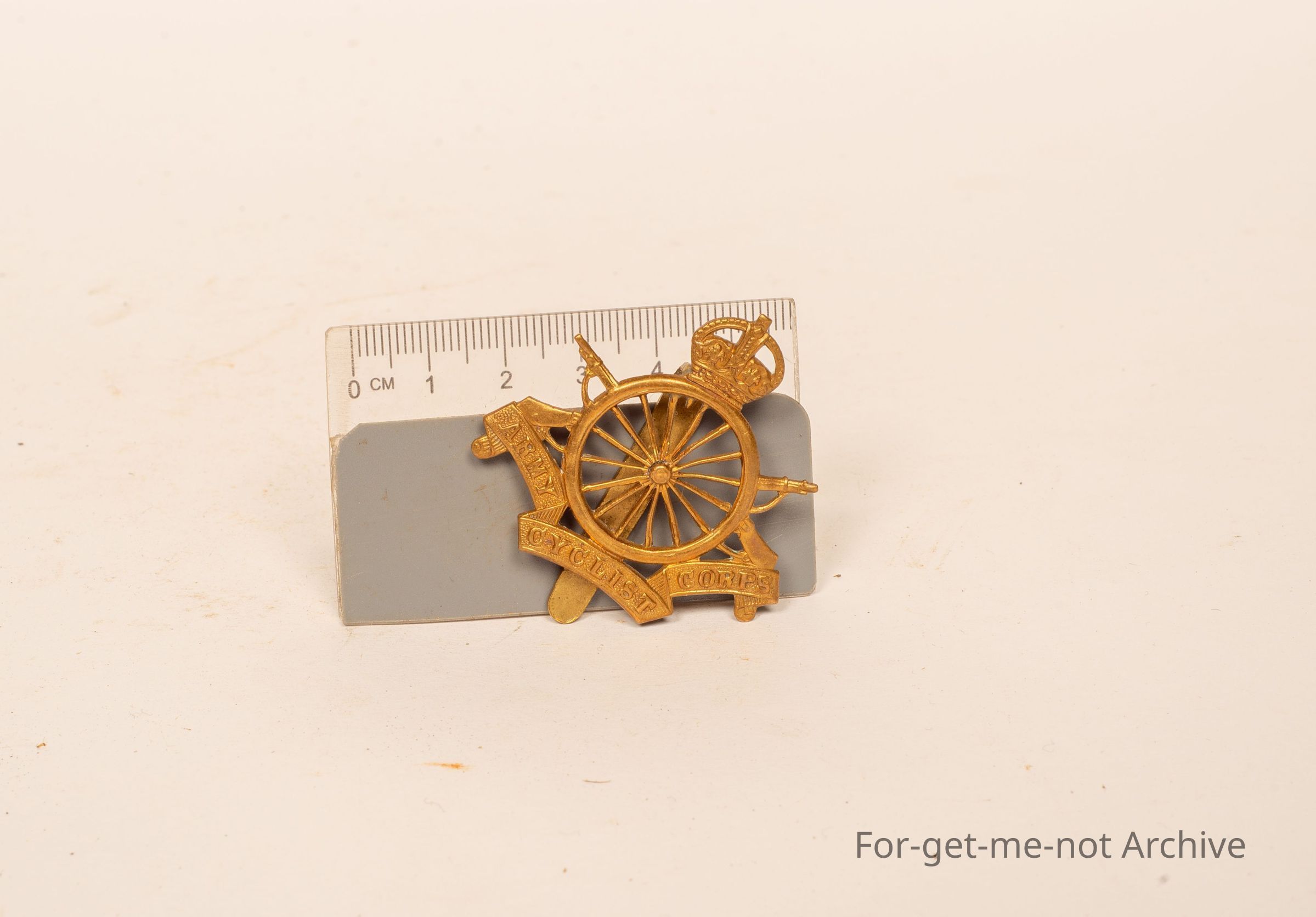 An army hat badge referred to as a slider. this is from the Army Cyclists corpse First World War in lovely condition with a bike wheel image in the front. From an army collector's point of view, these are very difficult to find.Collection