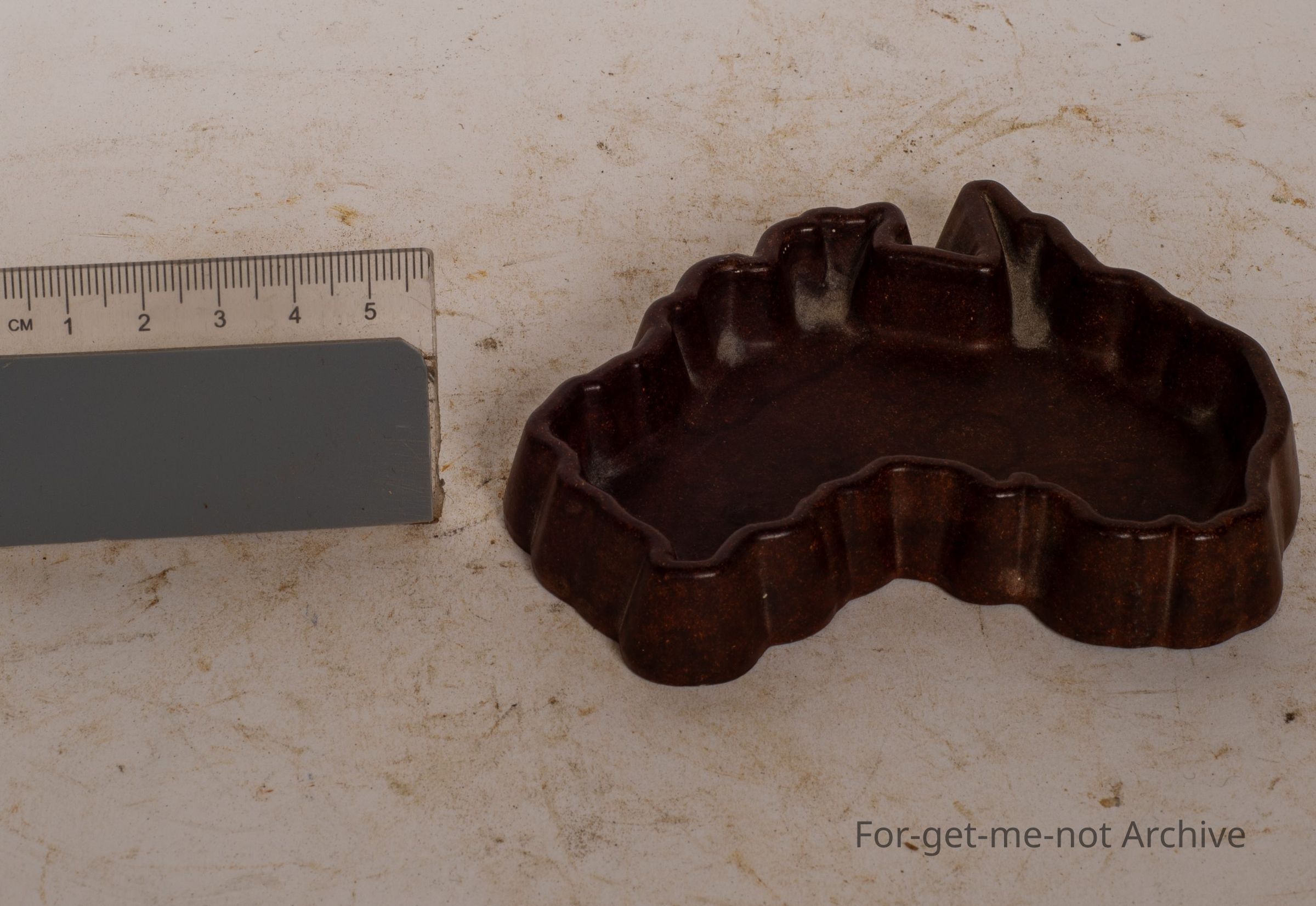 This is a little Bakelite map of Australia with high edges, to be used as an ashtray. No advertising.