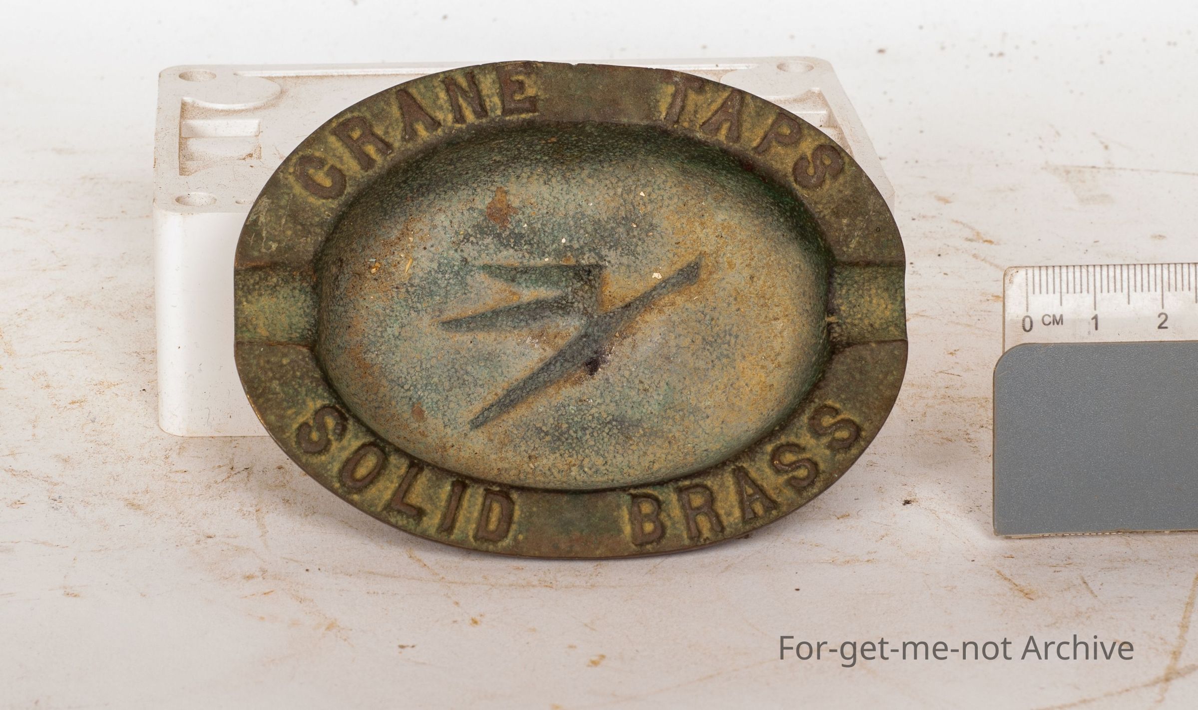 This is a small cast brass ashtray from Crane Taps, in beautiful condition, probably a rare piece