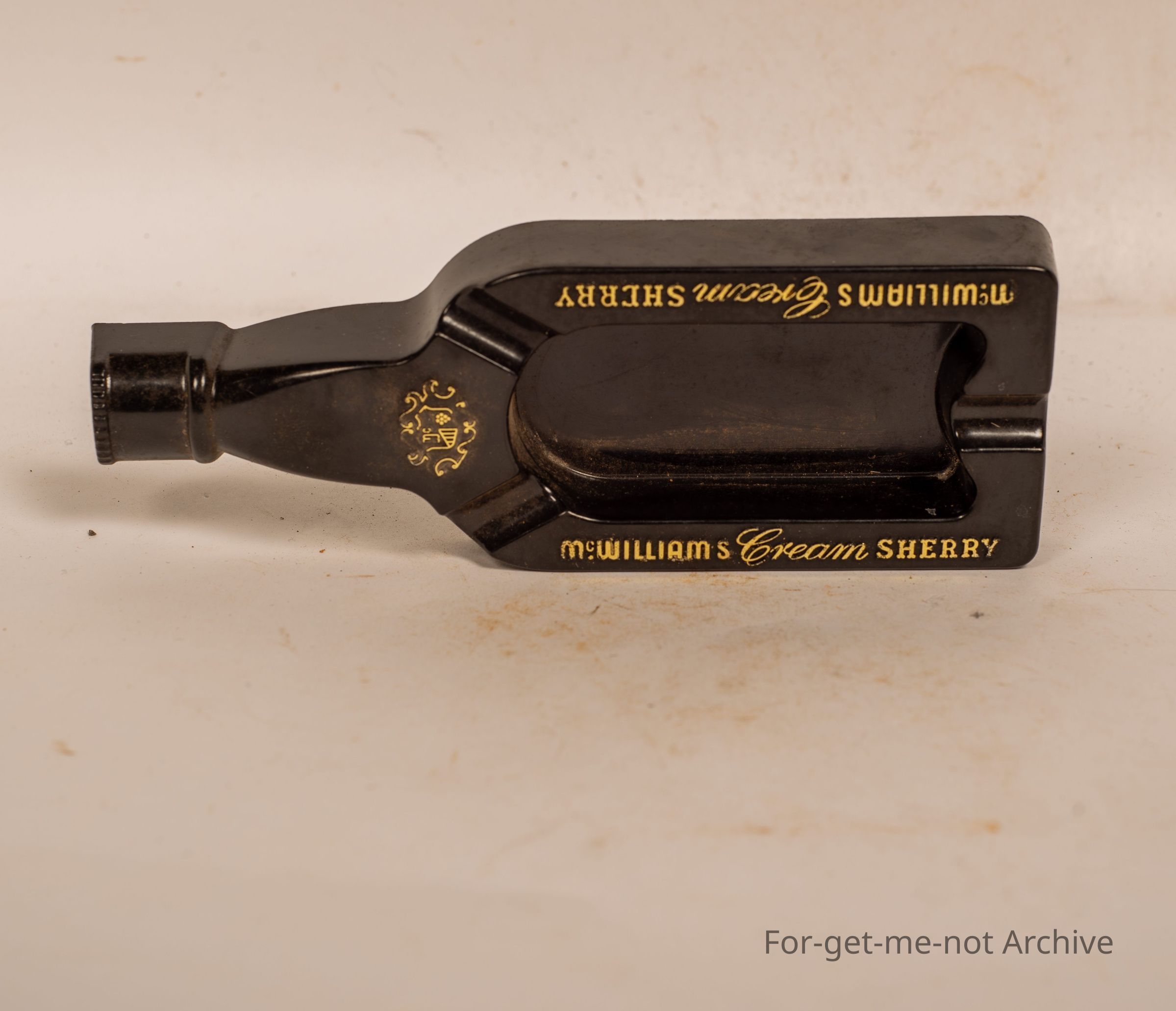 Bakelite advert advertising ashtray in the shape of a bottle, Advertising McWilliams Cream Sherry.