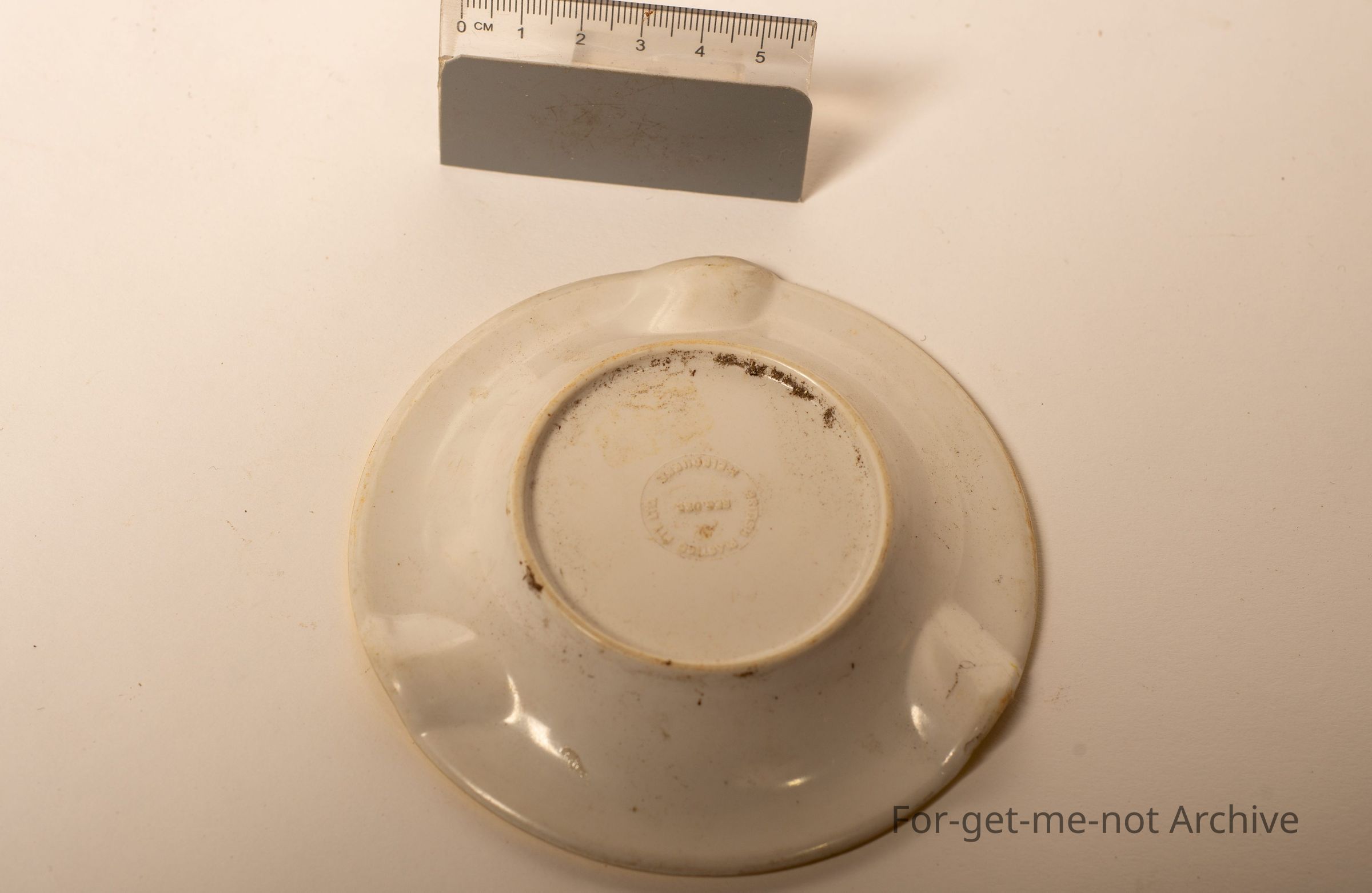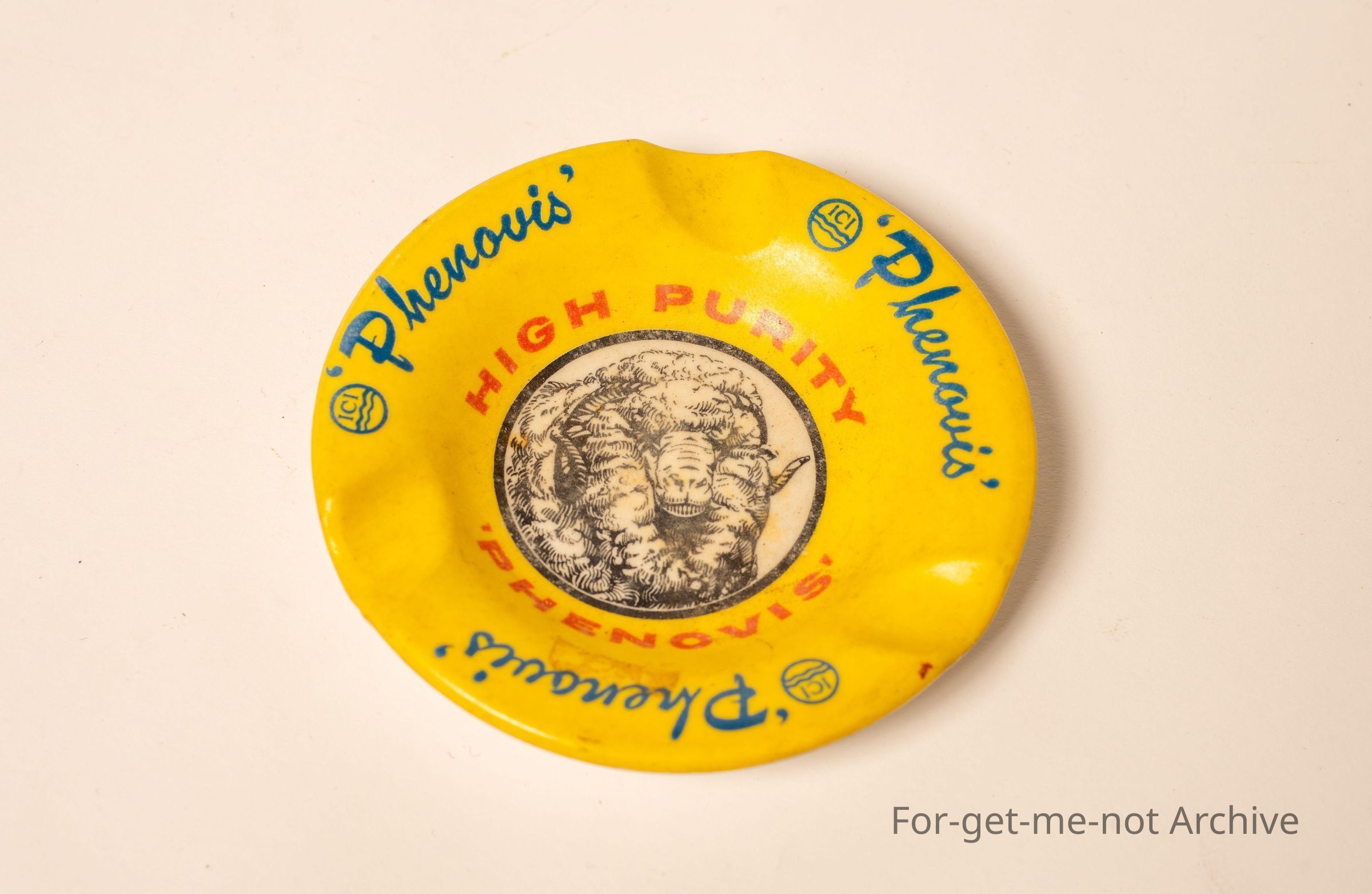 In advertising ashtray for Phenovis high purity drench for sheep with image of sheep in the centre. This was an ICI product.
