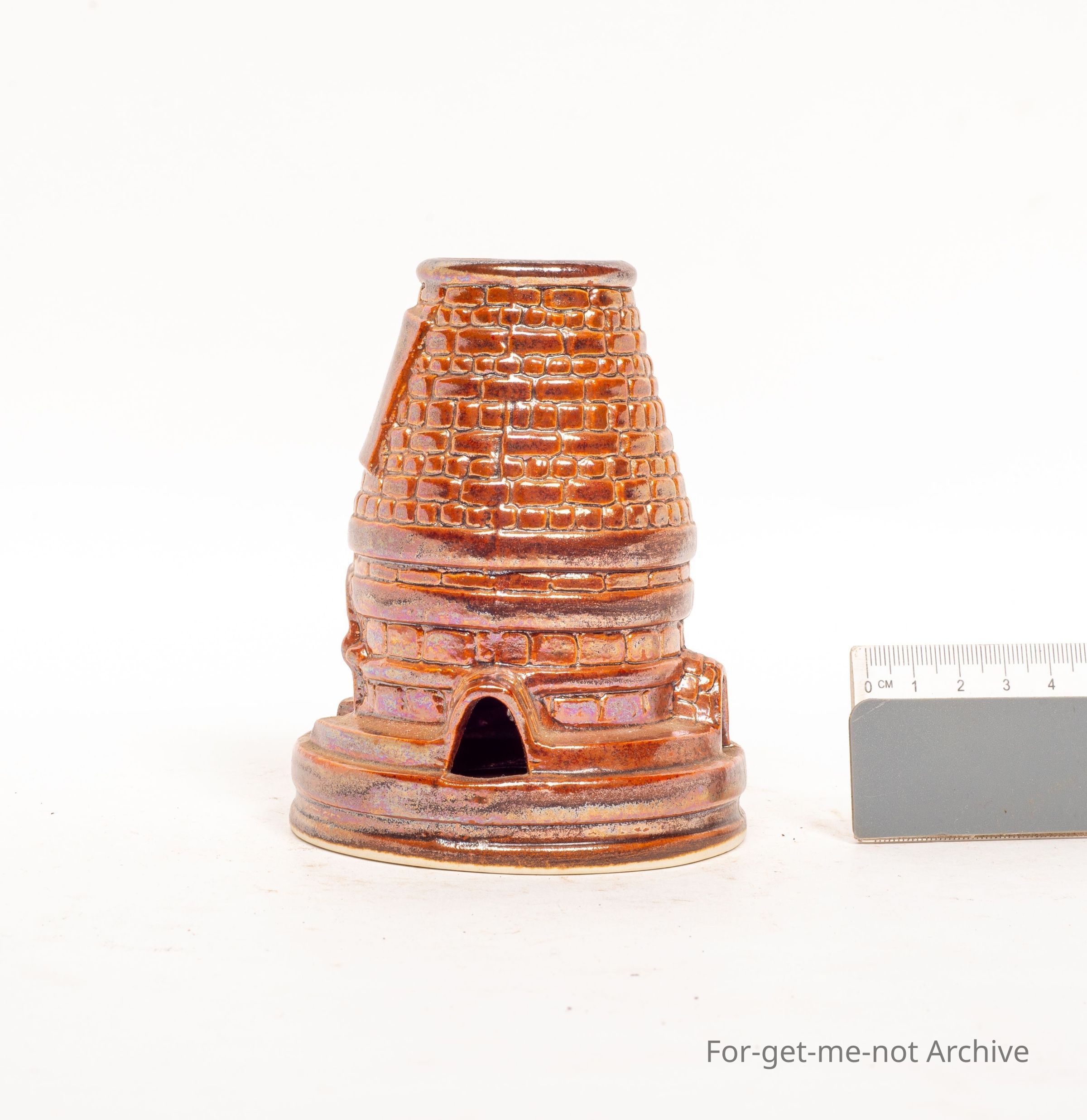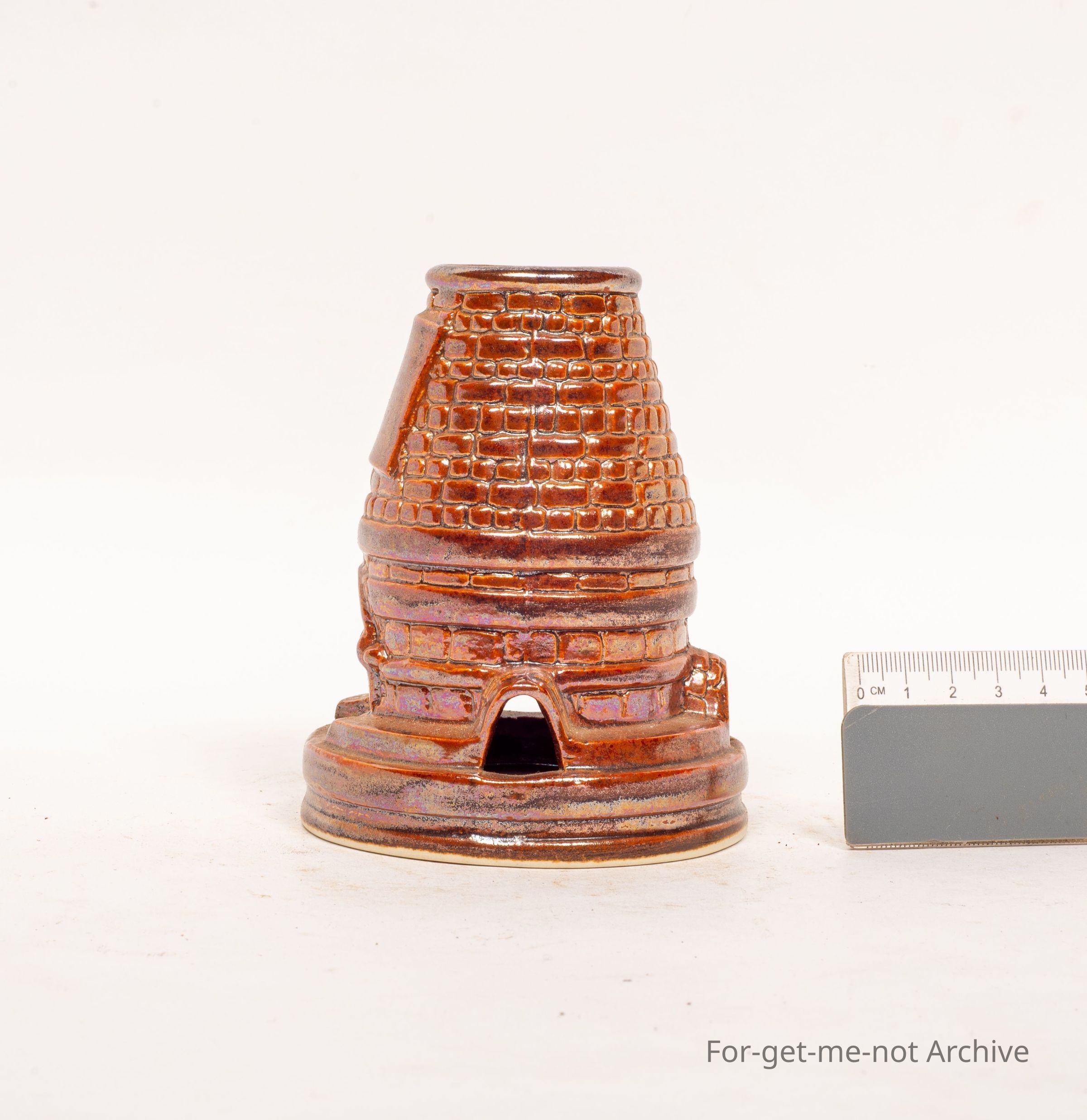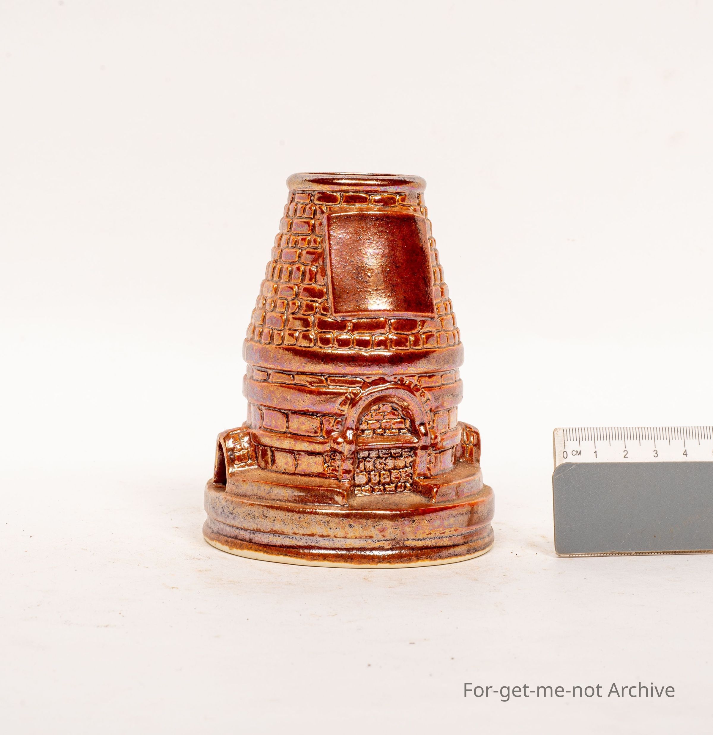 This is, an ashtray in the form of a potter's kiln. The entrance doors or the fuel doors at the base are for the cigarettes. It's got an open top. These were done by Bendigo Pottery, but this one could have been done by someone else using one of their molds.