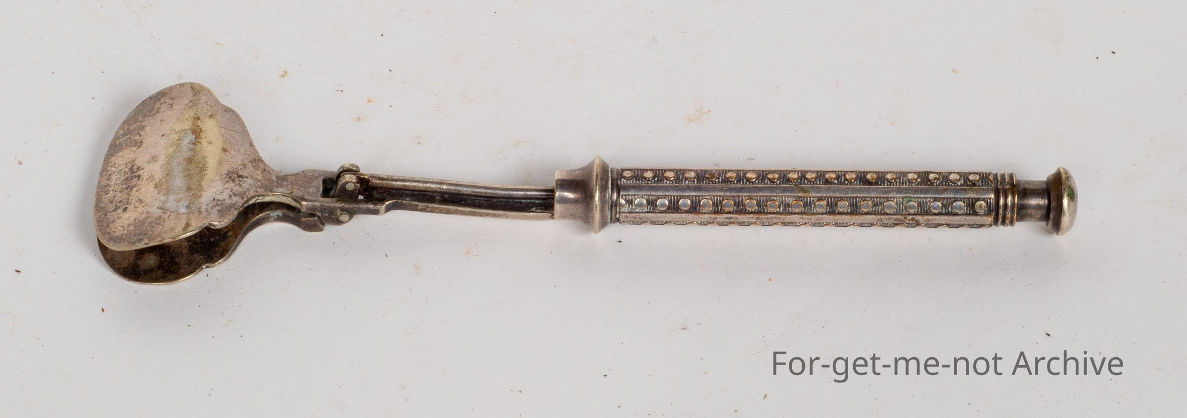 A silver plated tong arrangment from cutlery set with press button at rear to grasp the asparagus.