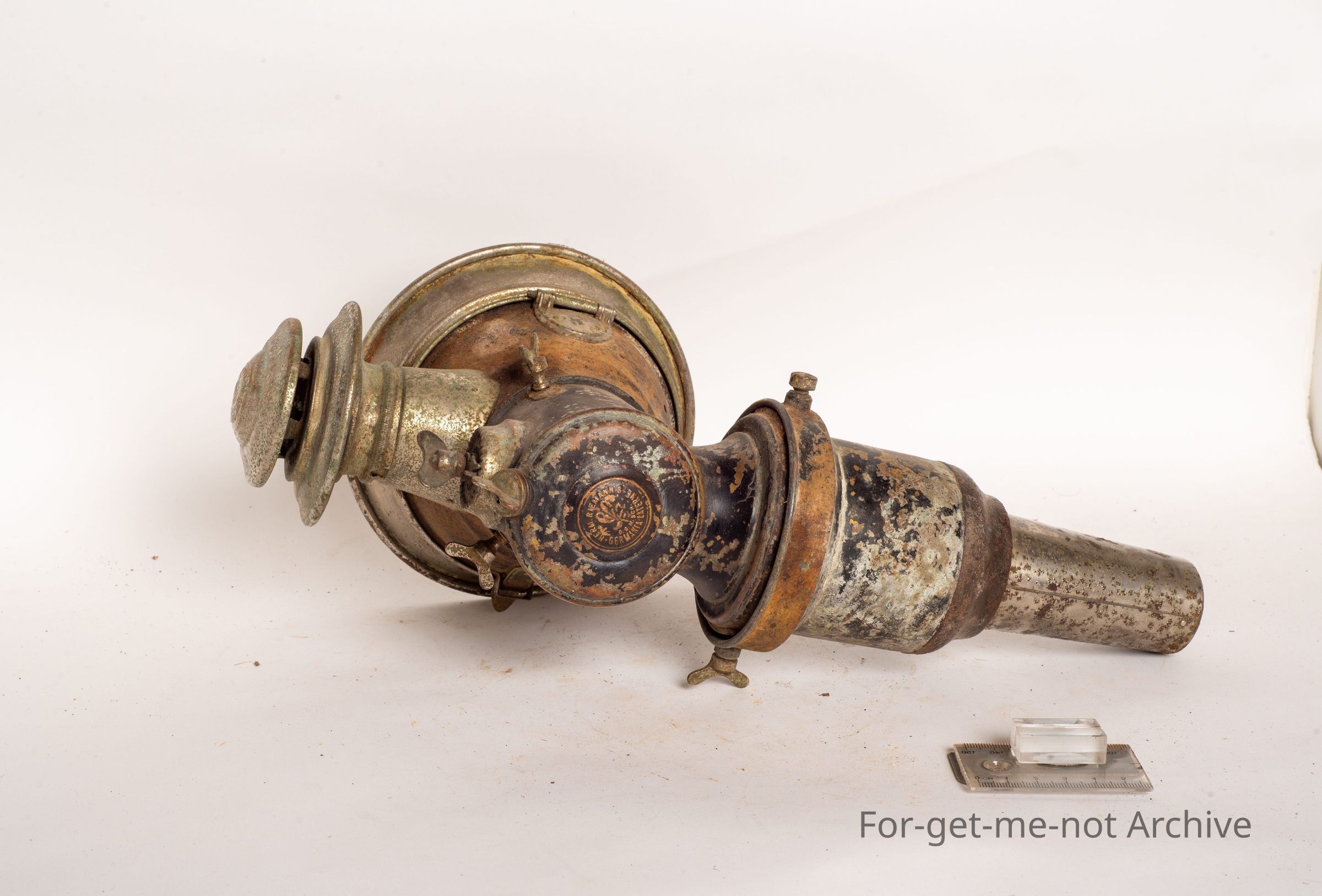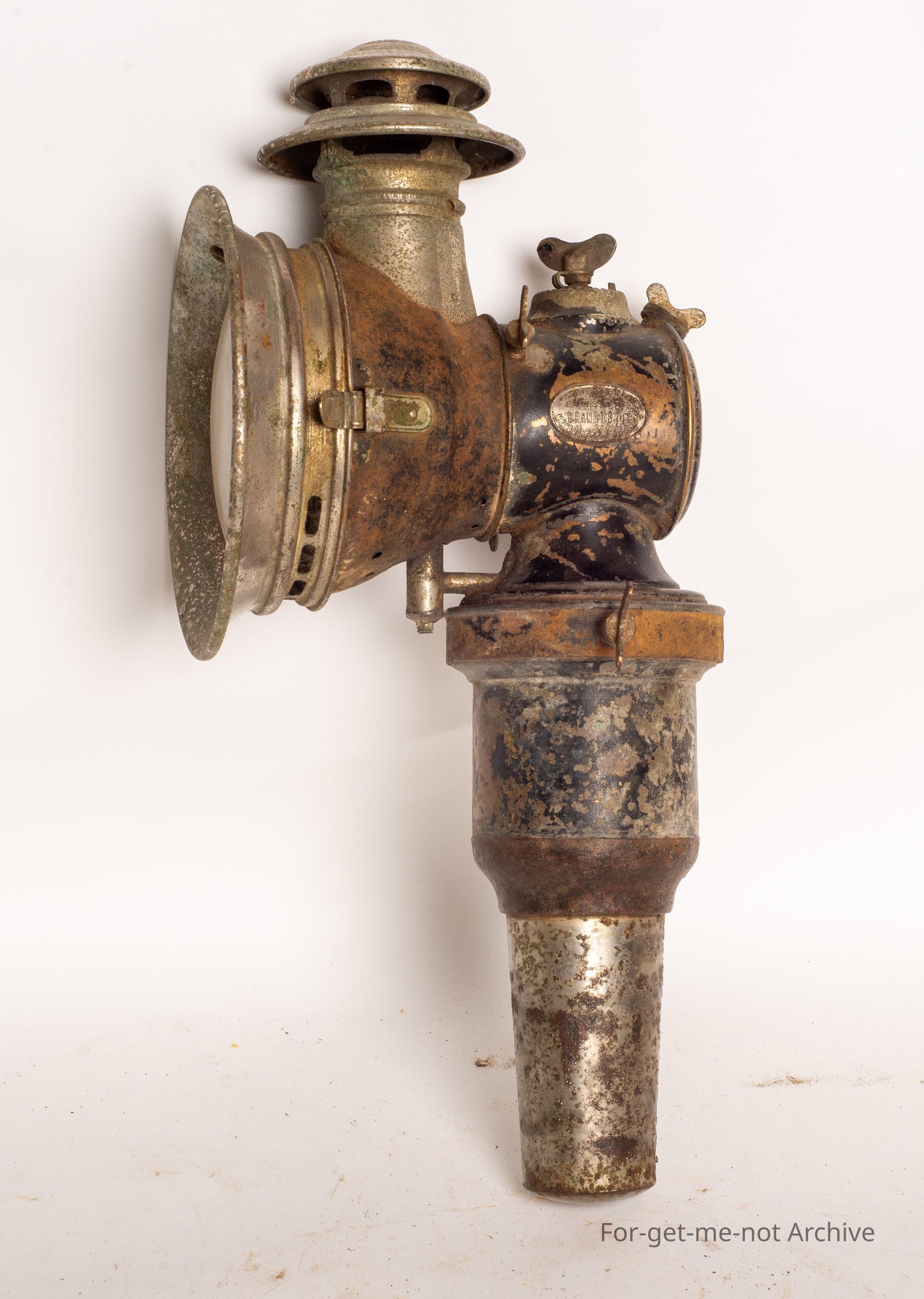 This is a very early automobile lamp, carbide powered. Been very elaborate in the day. Needs a bit of cleaning up. European, made. All complete, but not in brilliant condition.
