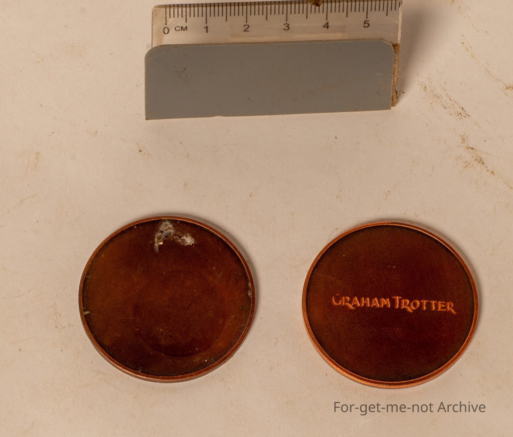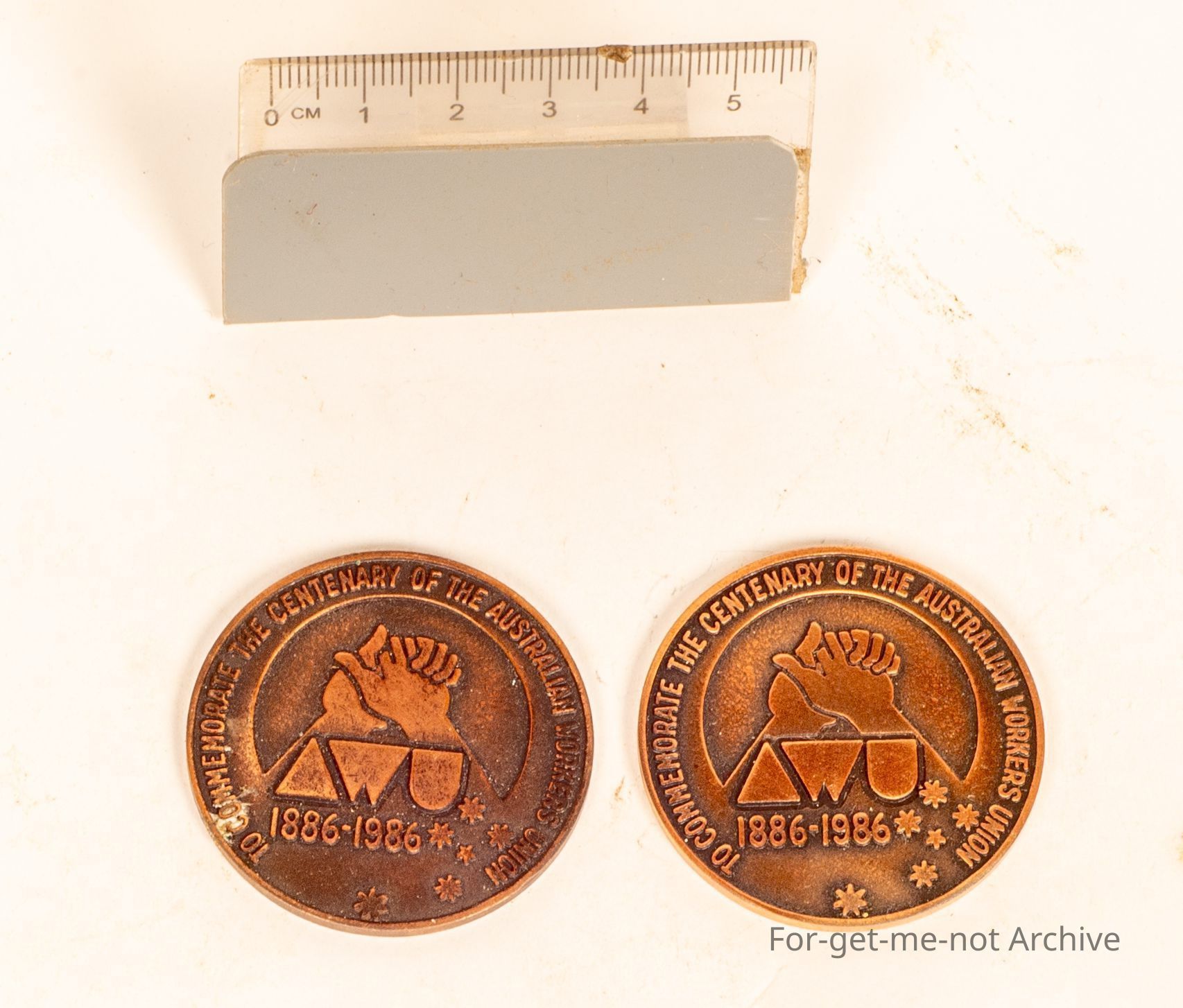 These are 2 plaques issued at the Centenary of the AWU in Ballarat from 1886 to 1986. In order to get this plaque you had to get up on a raised stage and shear a sheep. When you shore the sheep, you're issued with a plaque to commemorate the fact that you shore a sheep at this centenary. Named for Graham TrotterCollection