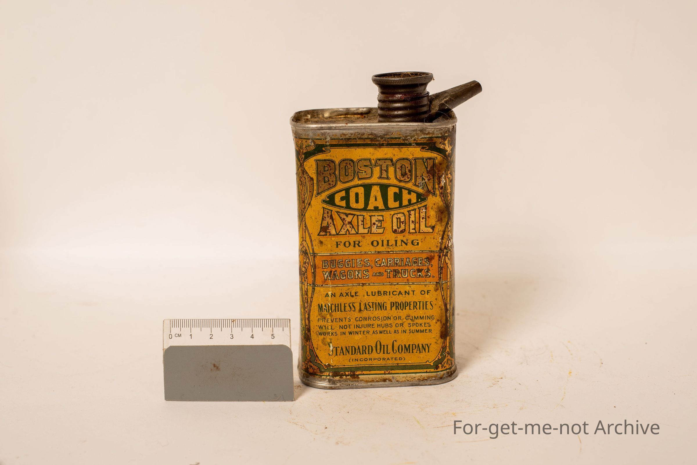 Another quite a rare tin. This one is Boston Axle Oil Coach brand for oiling buggies, carriages and wagons. Standard Oil Company, lots of wonderful graphics.
