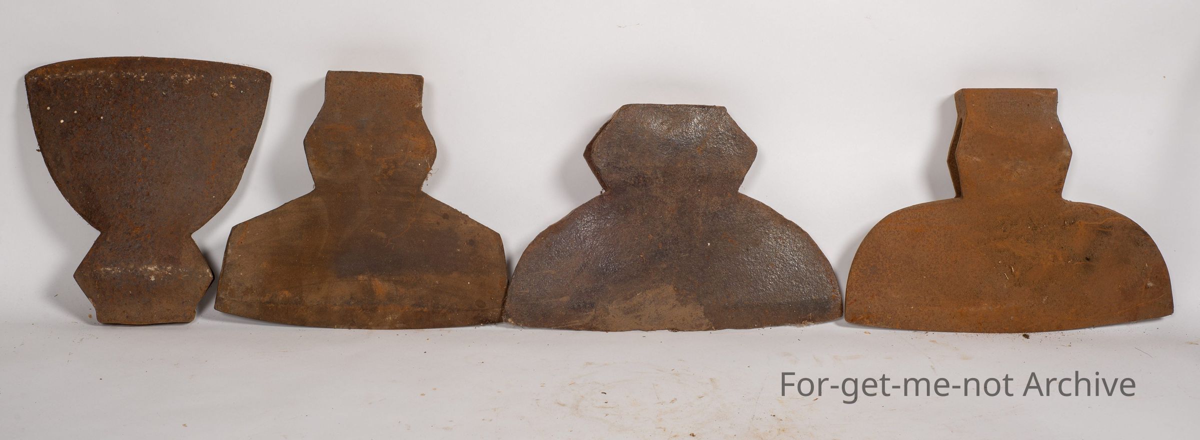 Rural tools. These are 4 broad axe heads of various sizes and shapes. Each one has a curve and a flat side. They were used for cutting sleepers, etcetera, or shaping very large pieces of wood. A very skilled job. For 4Collection